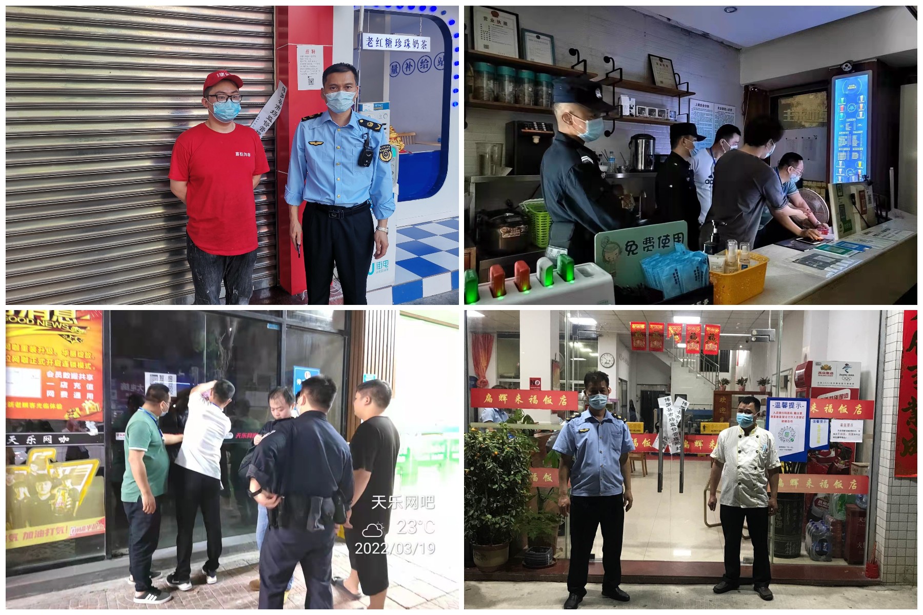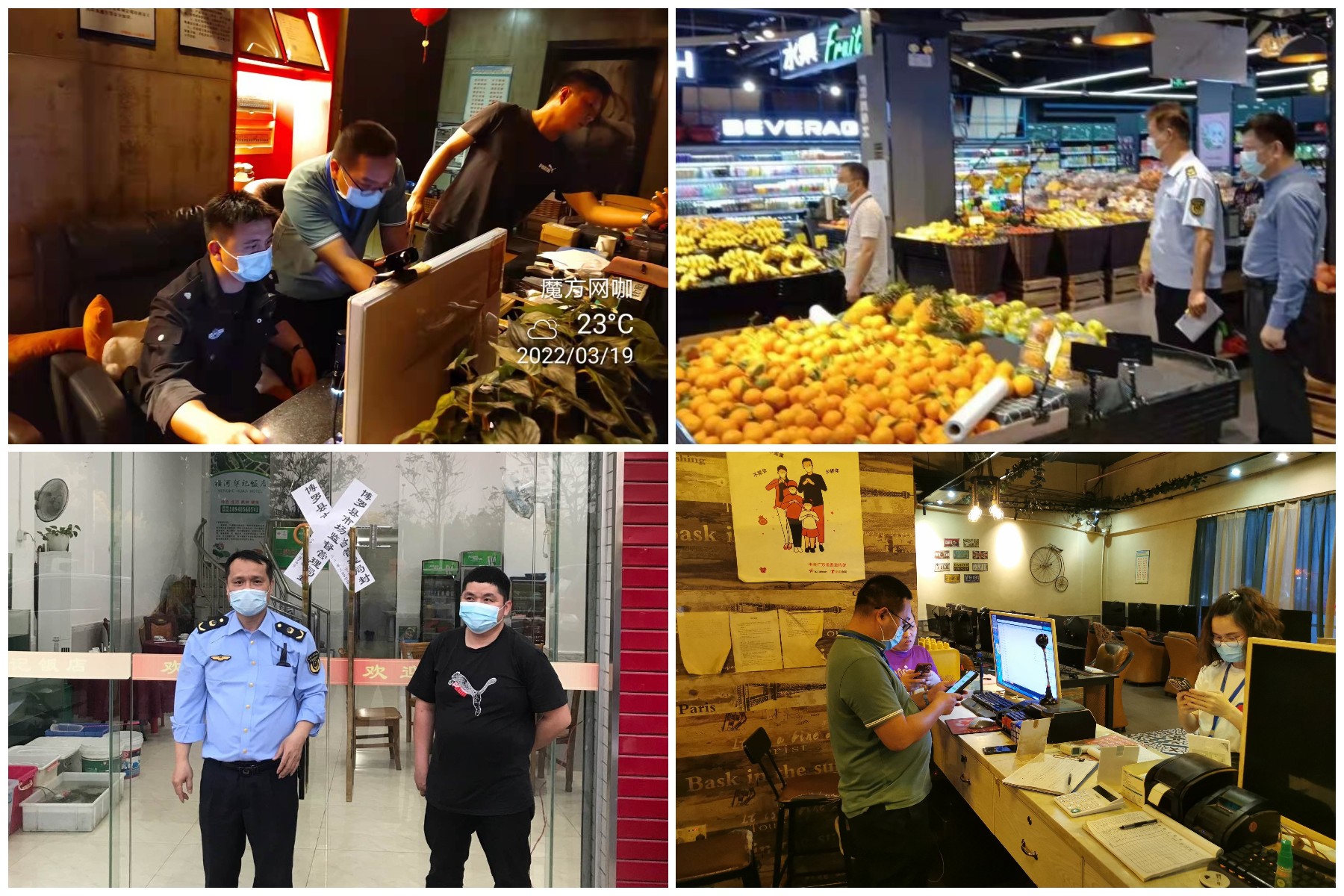 工作组深入辖区内KTV、网吧、餐厅、农贸市场等行业场所开展专项检查行动,抽查KTV、网吧、影院等行业场所是否存在表面关停实际经营情况;督导商超、餐饮等行业场所严格落实逐人逐客进行测温登记、查验健康码和行程码、落实每日消杀等疫情防控措施,告知场所相关负责人要牢固树立主体责任,坚守红线底线思维,严格落实疫情防控措施;对个别不按上级文件要求经营的场所,工作组将对其进行查封,并责令当场整改落实。截至目前,共检查餐饮46家、商超26家、农贸市场6家、KTV14家、网吧7家、酒吧3家、电影院3家,共查封网吧5家、餐饮店6间、饮品店6间、水果店1间。