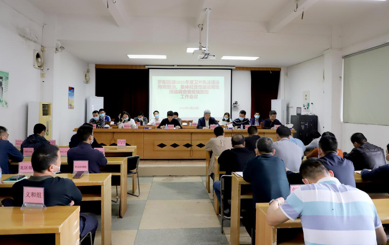 近日,罗阳街道召开2021年度卫片执法违法用地整治、集体经营性建设用地摸底调查暨疫情防控工作会议。街道领导班子成员,街道综合执法队、农业农村办、农林水综合服务中心、林业工作组、水利工作组、农村经营管理工作组、罗阳自然资源所等部门负责人,各村(社区)书记、主任等参加会议。