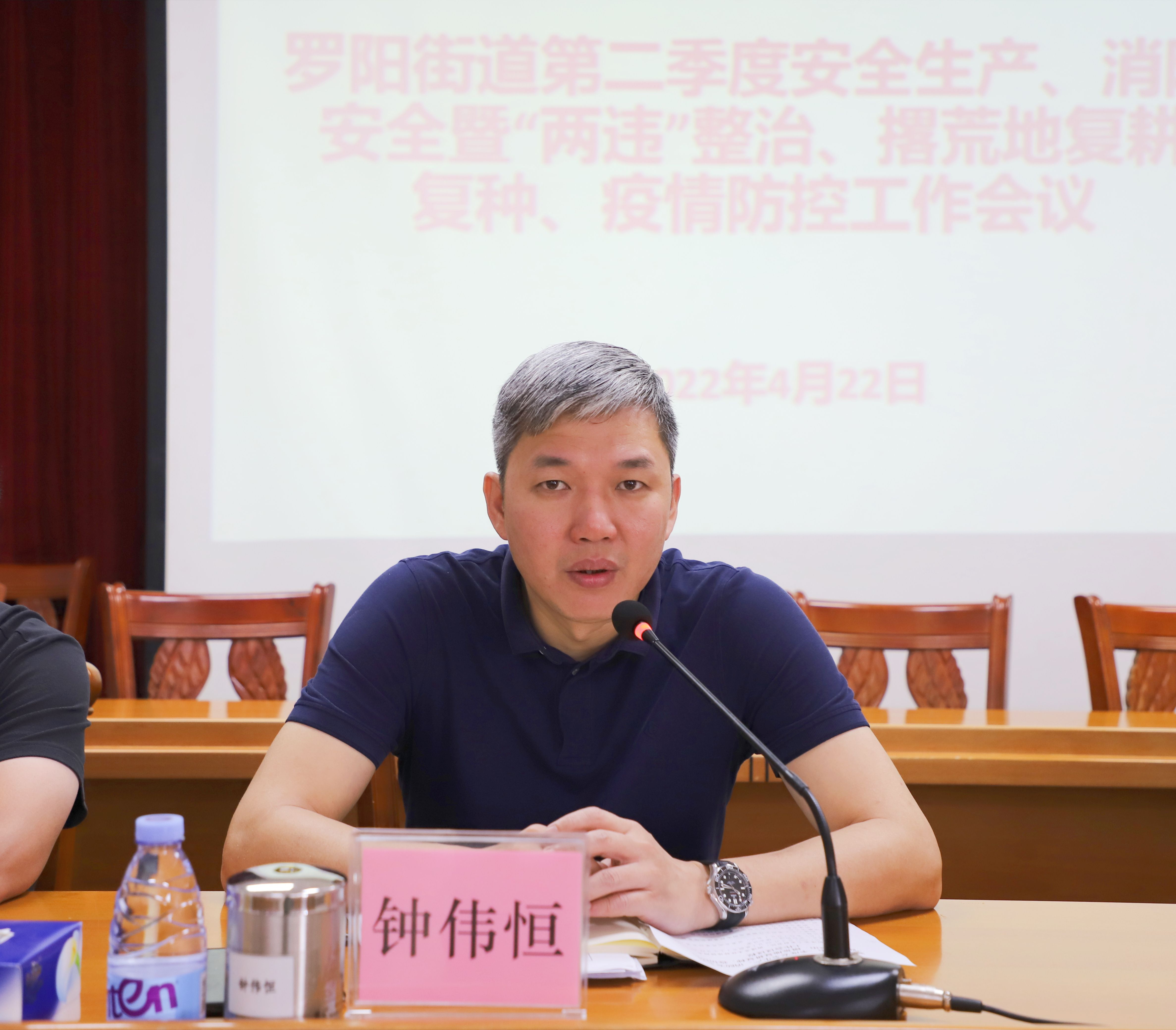 钟伟恒指出,当前全国疫情防控形势依然紧张,值此时期更不可掉以轻心,要坚持守土有责、守土担责、守土尽责,统筹好疫情防控与经济发展,抓好发展与安全,切实维护罗阳平稳有序的社会大局。对于我街道下一阶段的撂荒地复耕复种、疫情防控、森林防灭火、安全生产及“两违”整治及"无违建镇(街)"创建工作,钟伟恒作出强调: