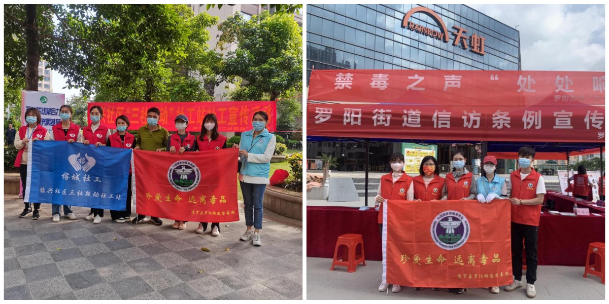 (在振兴社区、天虹广场开展禁毒宣传活动)