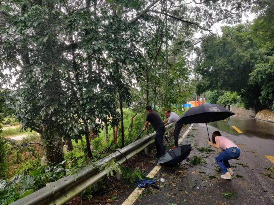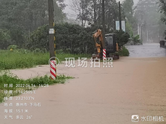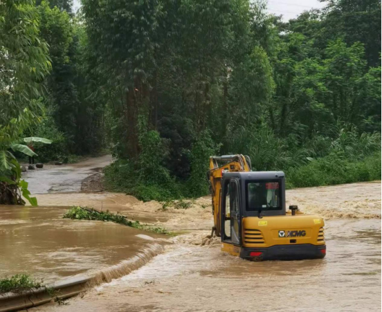 部分村因地势低洼和短时雨量大,无法及时排出雨水,导致村道被淹没。相关村村委立即启动应急预案,组织工作人员,利用挖掘机等大型机械,疏通村道下水口的堵点,在暴雨、急流中排洪抢险。