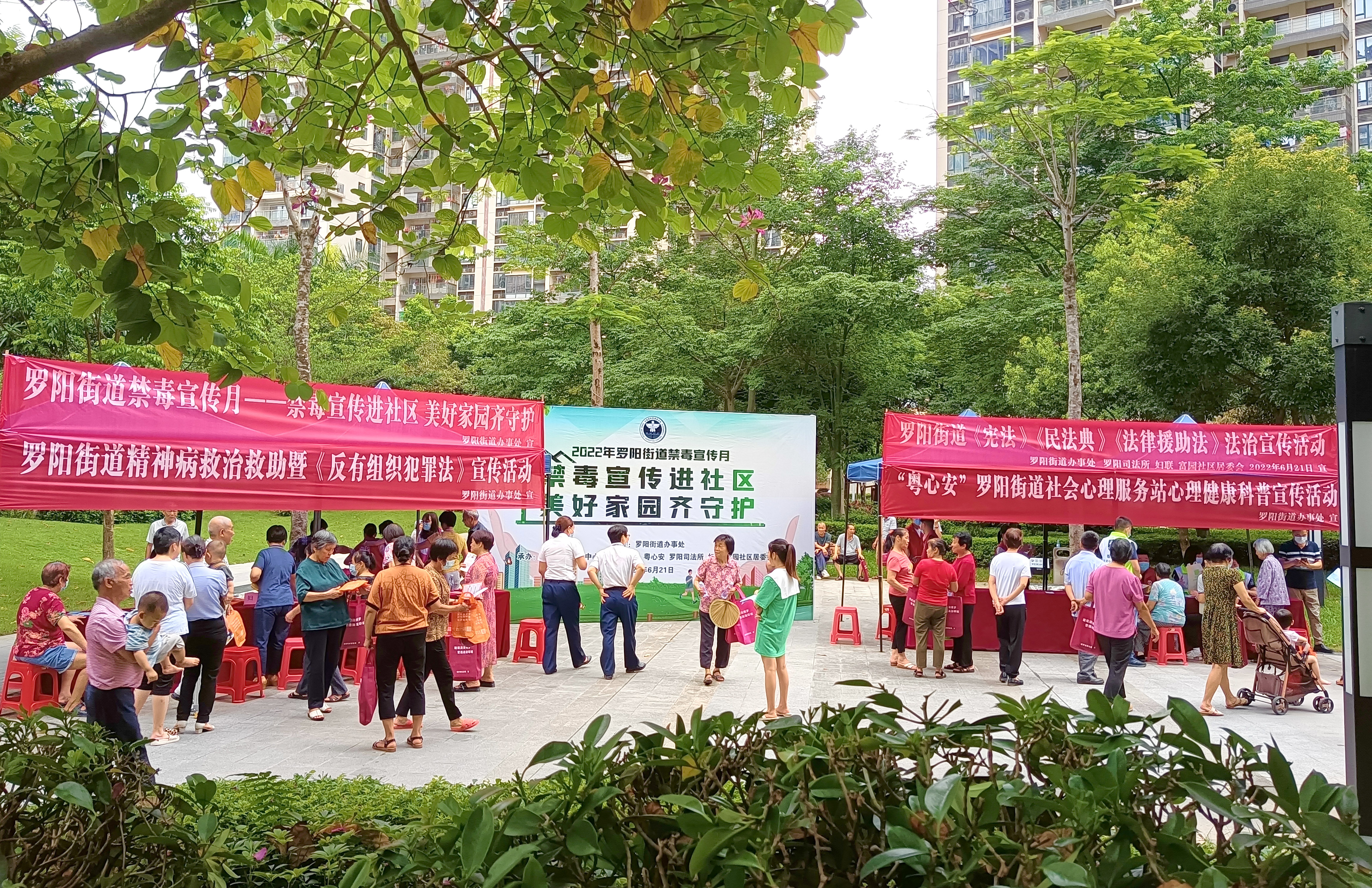 为切实增强群众禁毒、防毒、拒毒意识,加大禁毒宣传力度,营造浓厚禁毒宣传氛围。6月21日,罗阳司法所联合罗阳街道综治中心、禁毒工作组、妇联、粤心安心理辅导站、富园社区居委会等部门在富力广场开展以“禁毒宣传进社区·美好家园齐守护”为主题的法治宣传活动。