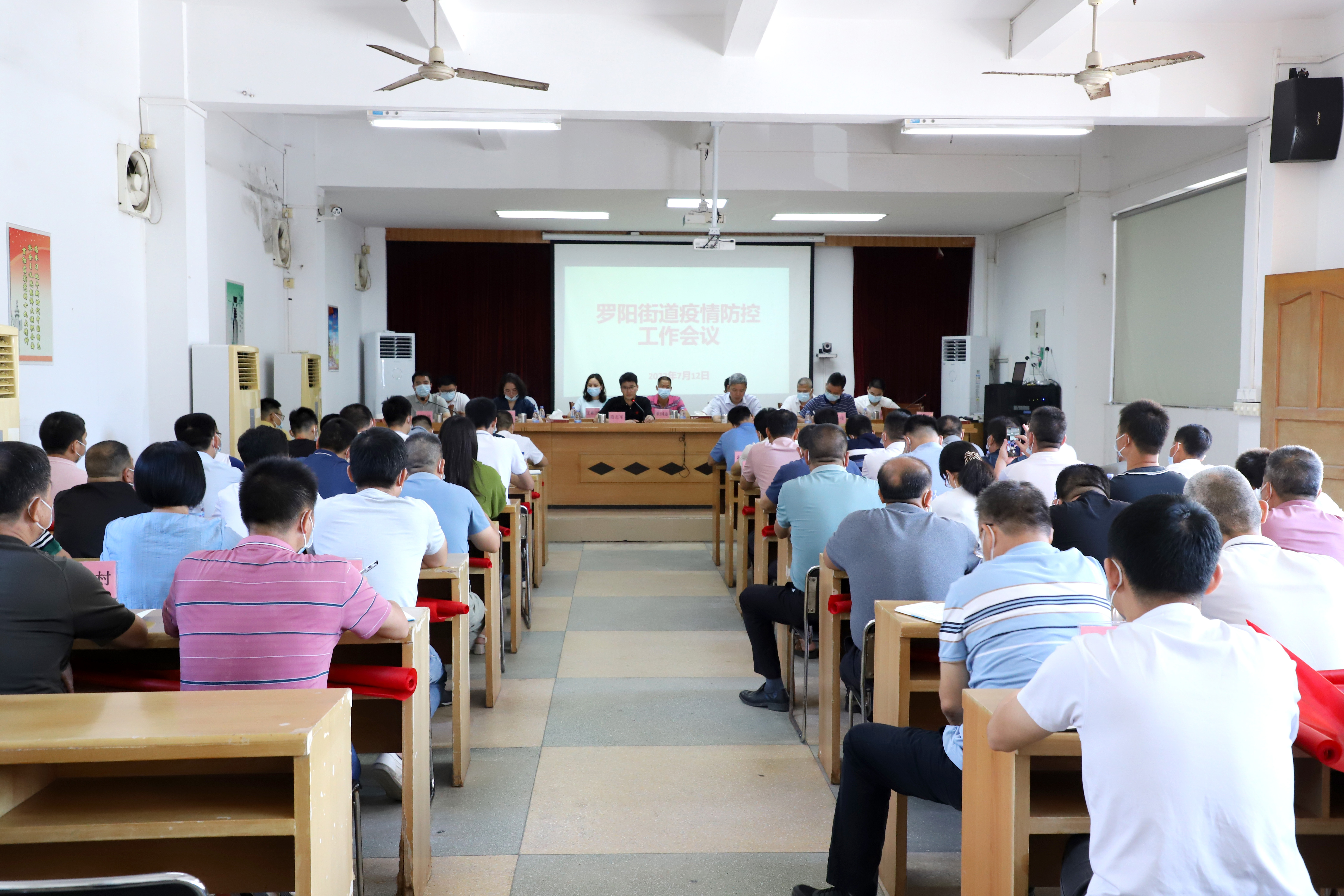 7月12日,罗阳街道党工委书记范志军主持召开疫情防控工作会议,街道领导班子成员、各防控专班副组长及各村(社区)书记参加会议。