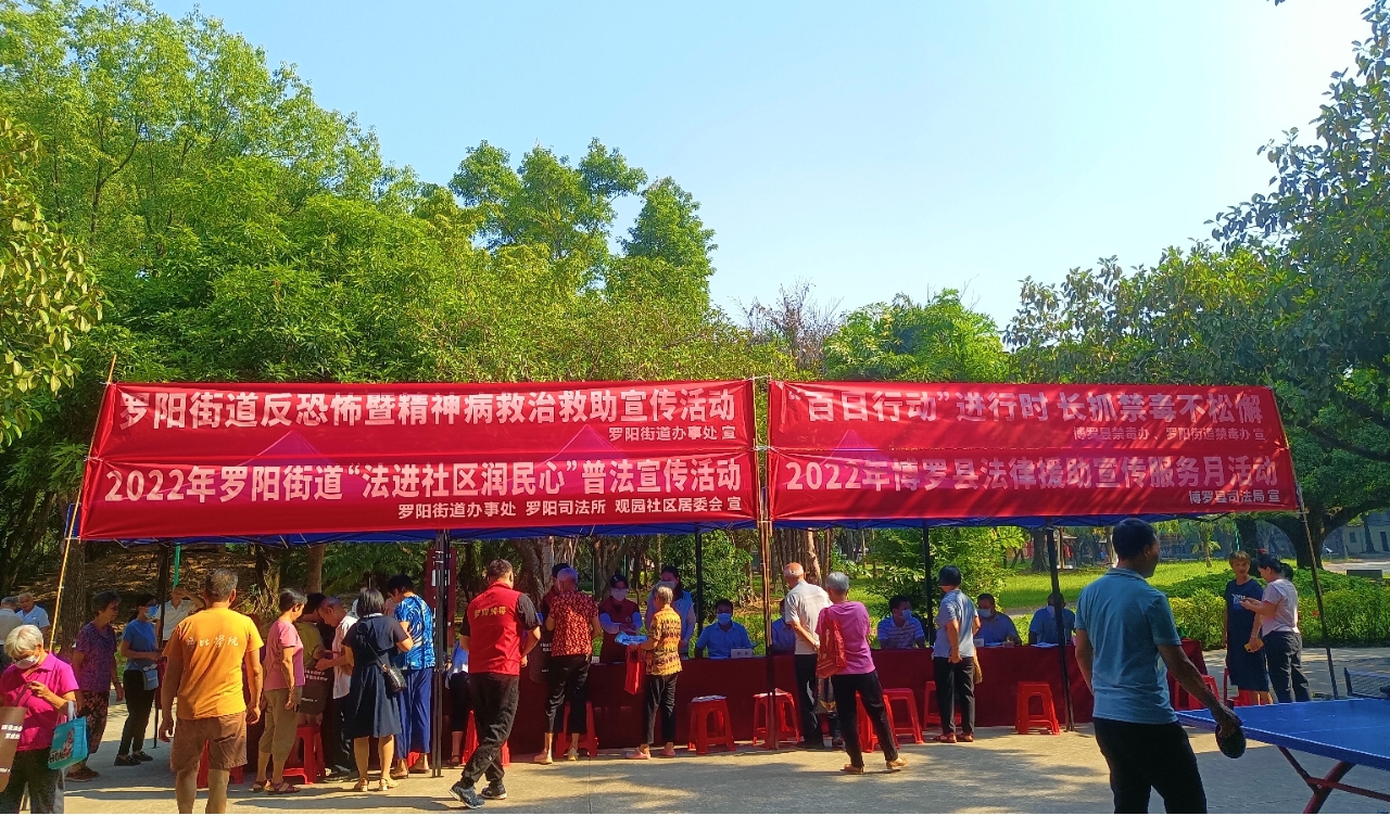 为深入学习宣传贯彻习近平法治思想,提高广大居民的法律知识和维权意识,掀起尊法学法守法用法热潮,9月13日上午,中文博彩平台司法局、罗阳街道综合治理中心、罗阳司法所、禁毒工作组等部门联合在观园社区人民公园开展“法进社区润民心”普法宣传活动。