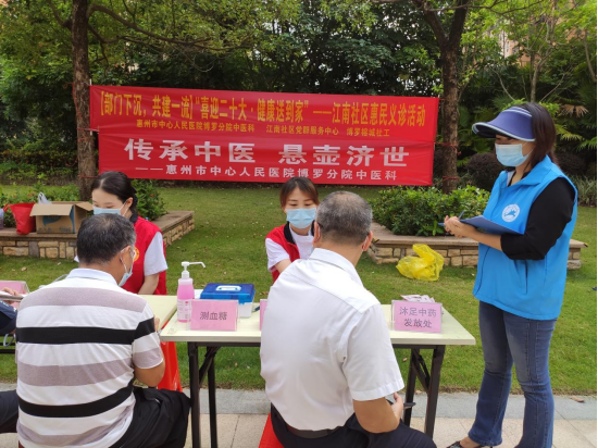 9月21日上午,罗阳街道江南社区党群服务中心联合共建单位惠州市中心人民医院以及江南社区“三社联动”社工站在佳兆业东江新城小区开展了“喜迎二十大·健康送到家”惠民义诊活动,以实际行动将健康服务送到居民群众的家门口。