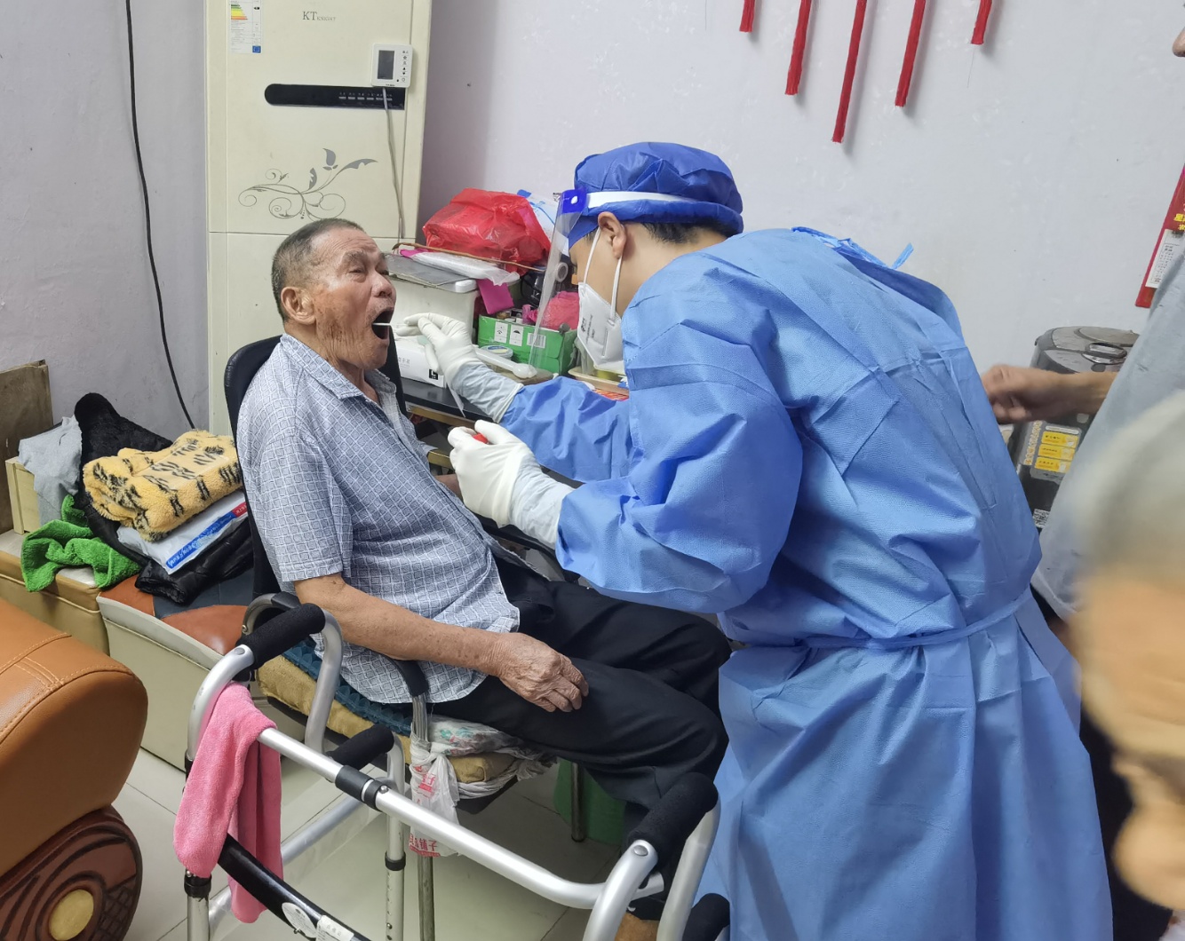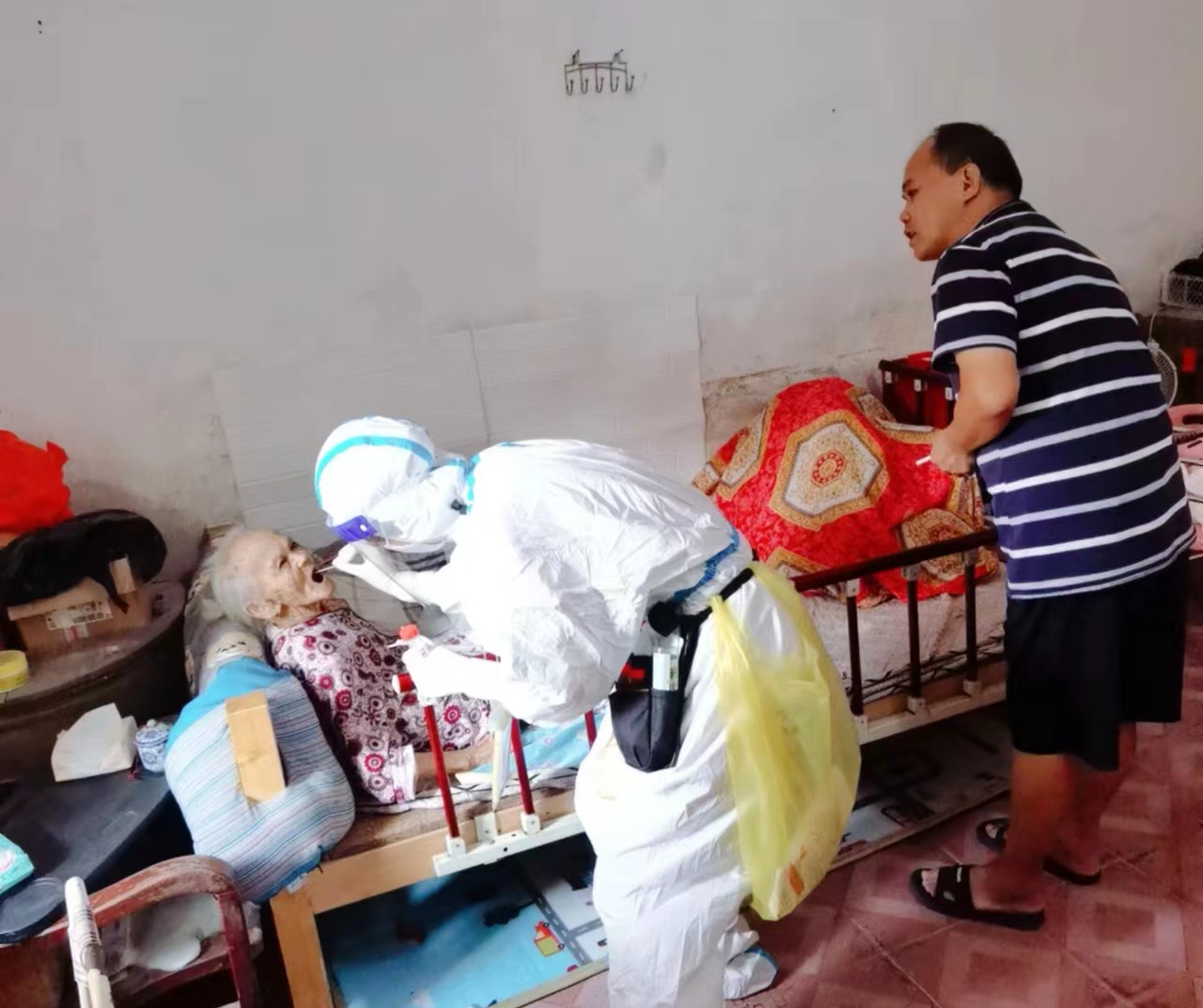 连日来,在罗阳街道小金村里,由村工作人员、医护人员和志愿者组成的工作组奔走于各居民楼之间,为行动不便的居民及年纪较大的老人进行核酸采样,确保核酸检测“不漏一户、不落一人”。