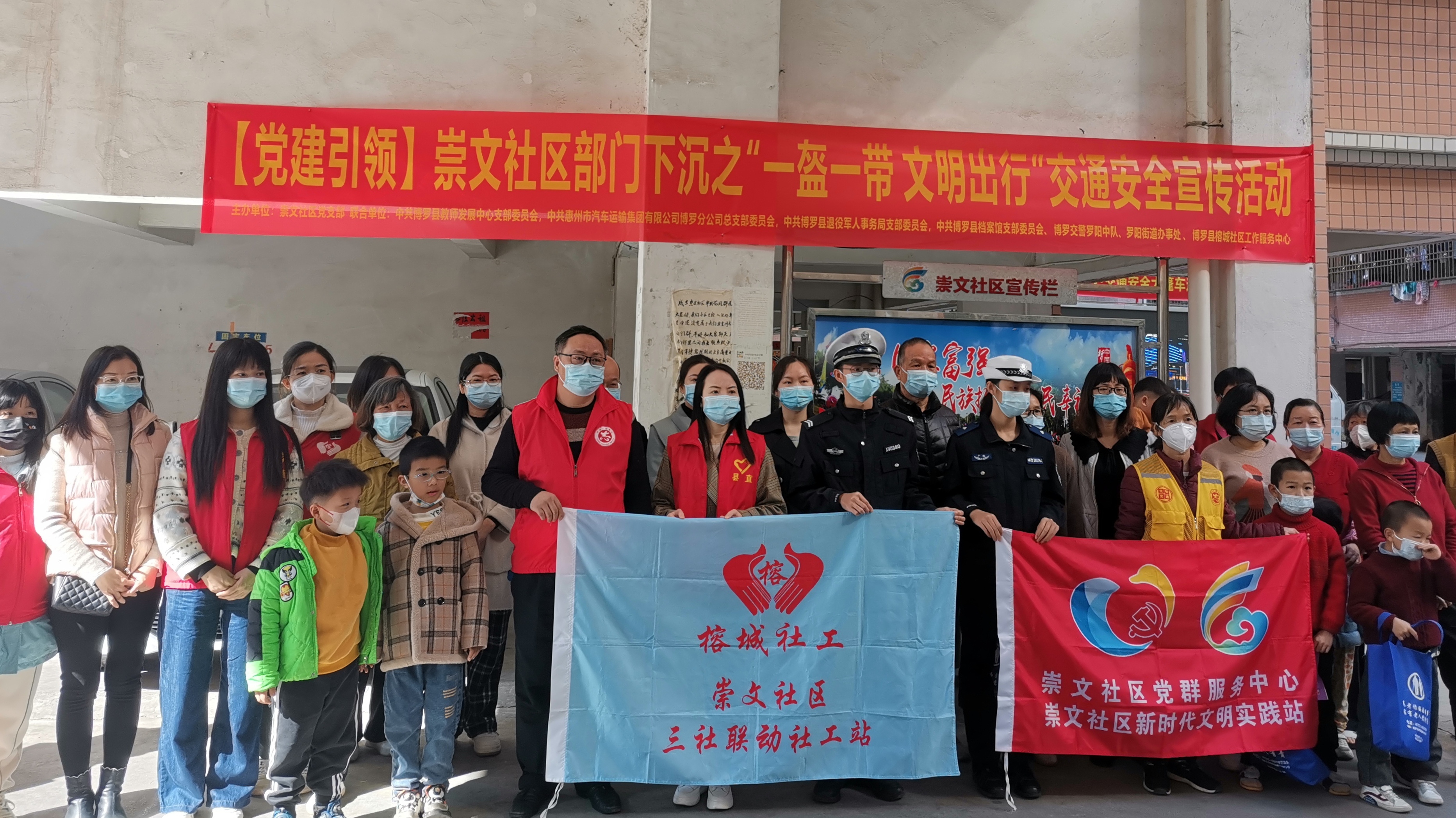 为倡导文明安全出行,从源头上预防和减少摩托车和电动车交通事故发生,切实提高群众交通安全意识,营造良好的交通秩序。近日,罗阳街道崇文社区联合社区部门下沉单位、县交警大队罗阳中队、马相华交通安全志愿服务队、榕城社会工作服务中心共同开展“一盔一带”文明出行,交通安全主题宣传活动。