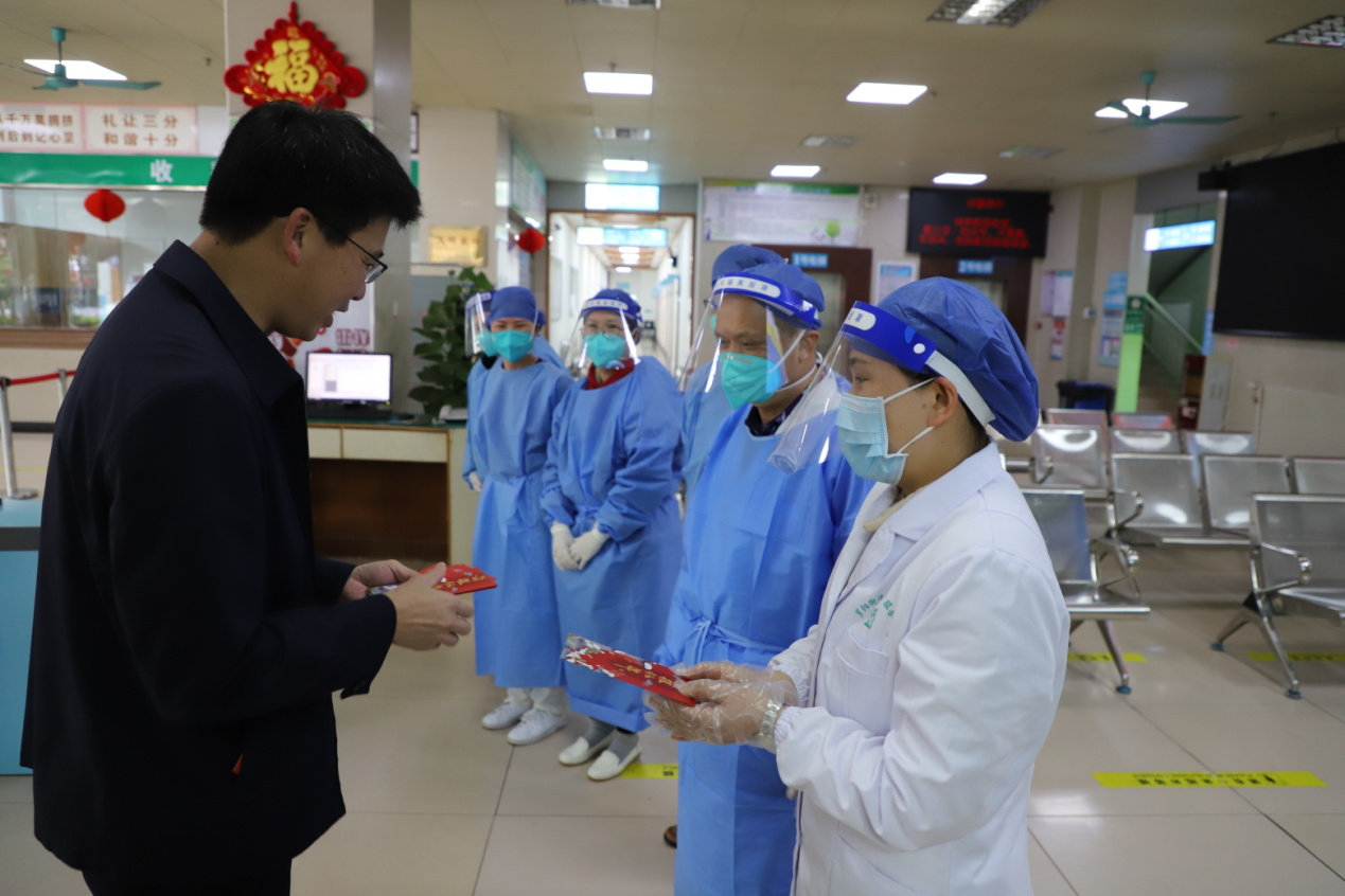 “新年好,大家都辛苦了,我们代表街道向大家拜年了!”每到一处,范志军、王彬兰都亲切与职工交谈,感谢大家的辛勤劳动和默默付出,同时对他们坚守工作岗位的精神和奋力拼搏的干劲给予高度赞扬,并详细询问了春节期间各科室工作安排、值班值守和安全保障等情况,叮嘱医务人员,在做好春节期间人民群众健康“守门人”的同时,也要注意保护好自己和家人,过一个团圆幸福的春节。