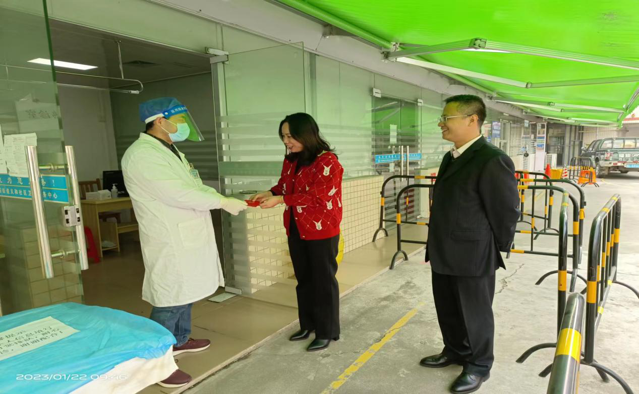 2023年1月22日,罗阳街道党工委书记范志军、街道办副主任王彬兰深入罗阳街道社区卫生服务中心和罗阳街道义和社区服务中心看望慰问春节期间坚守在一线的医护人员,为他们送去街道党工委、办事处的关心关怀和新春的祝福。