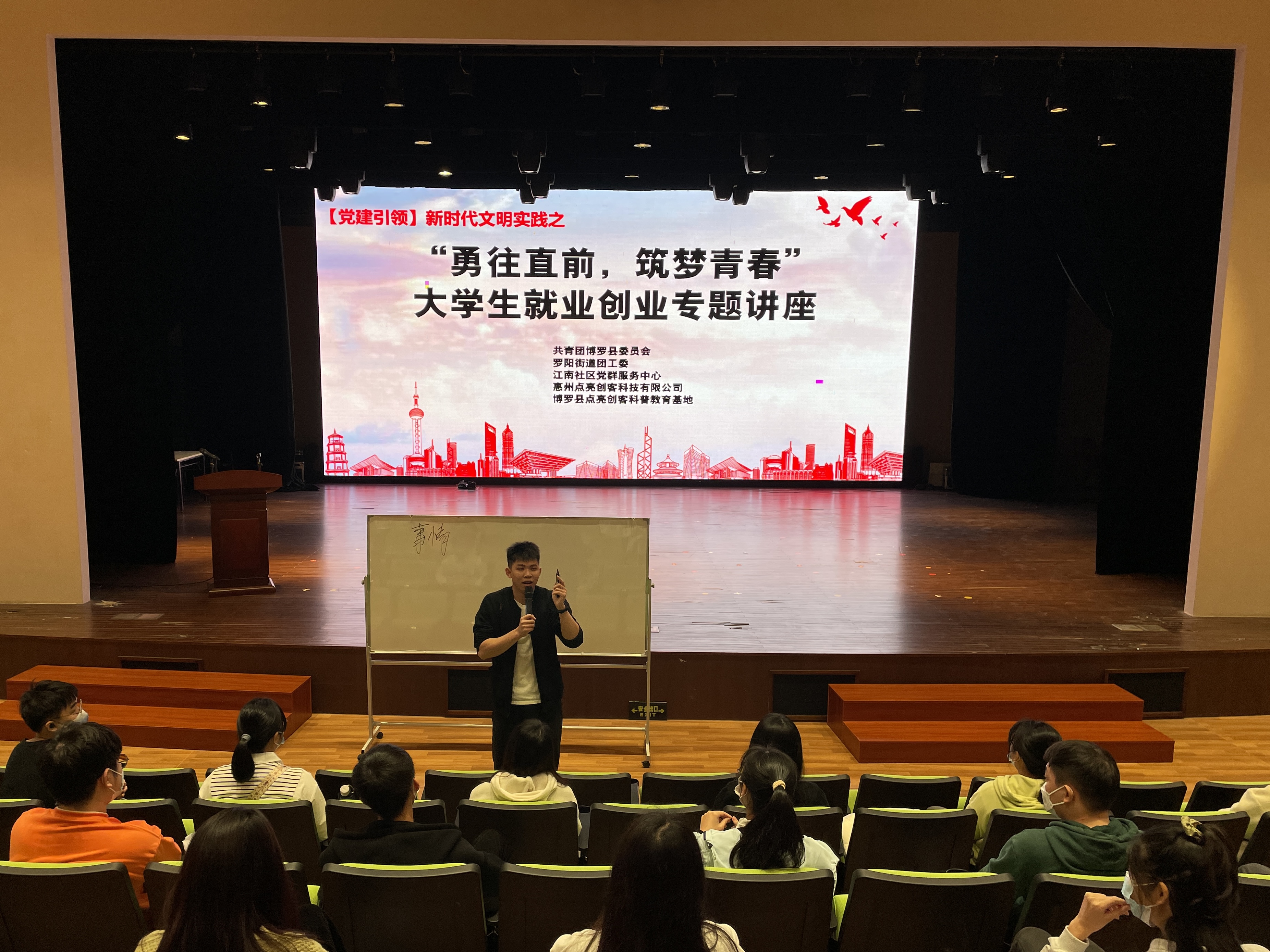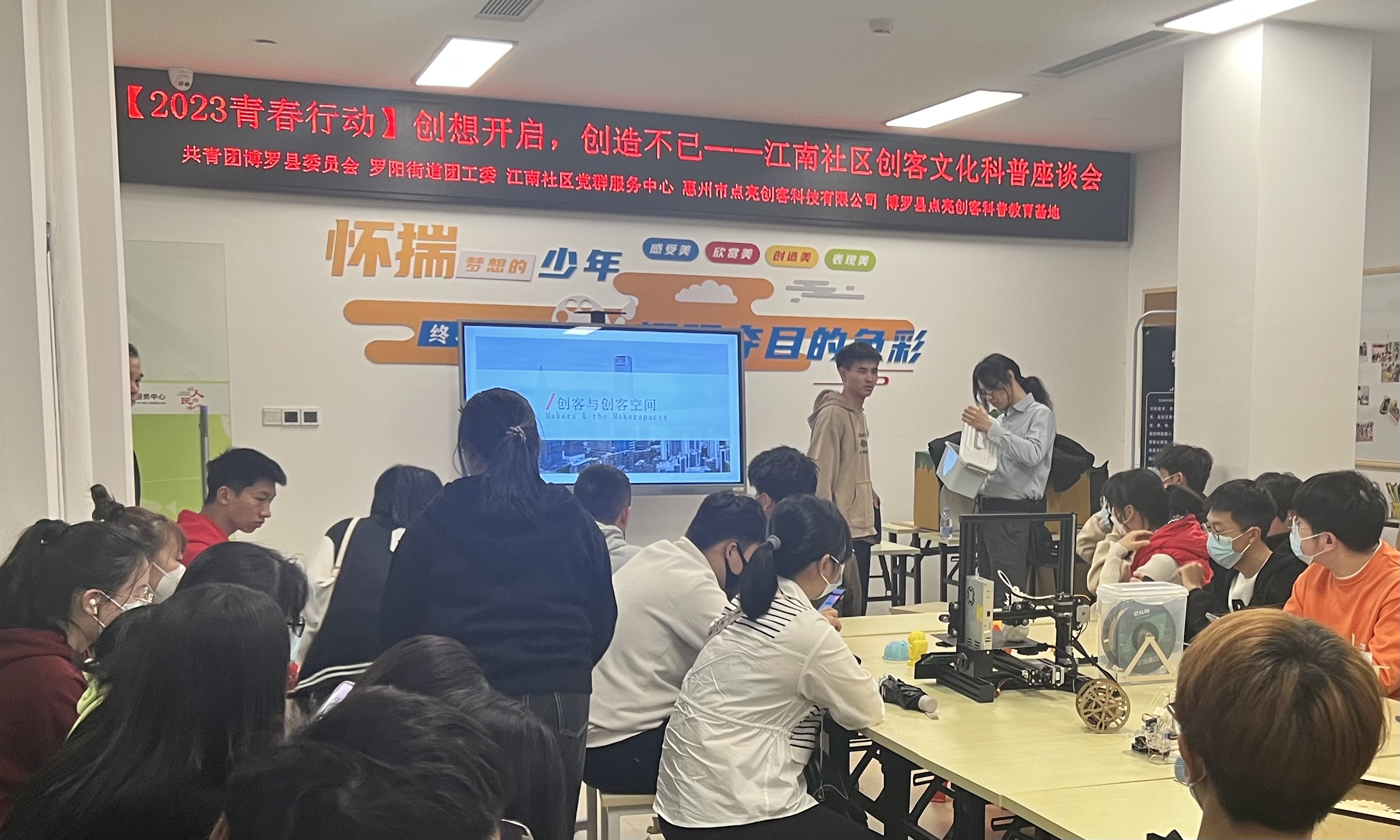 为进一步壮大青年人才队伍,充分发挥共青团组织服务青年的重要作用,激发青年创新创业活力,推动创业青年成长发展,2月4日,共青团中文博彩平台委员会、罗阳街道团工委、江南社区党群服务中心携手惠州点亮创客科技有限公司开展“勇往直前,筑梦青春”大学生就业创业专题讲座以及“创想开启,创造不已”创客文化科普座谈会。活动吸引了数十名青年大学生参加。