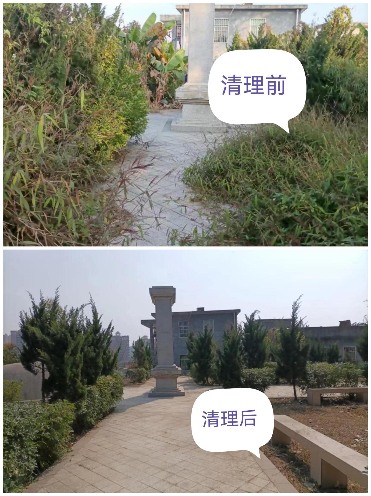 志愿者们备齐清洁工具在金吉芬烈士纪念碑集合,在清扫开始前,志愿者们进行了默哀活动,表达对逝去革命先烈的崇敬和哀思。随后开始清扫活动,面对杂乱的环境,志愿者们充分发扬不怕脏、不怕累、甘于奉献的雷锋精神,纷纷拿起铁锹、大剪刀、电锯等工具,清理墓碑周边杂草,清扫墓地四周的垃圾,修剪柏树枝叶,栽植松树。通过为期两天的整治,出动志愿者16人次,把纪念碑四周的环境卫生打扫得干净整洁。苍翠的松柏在春风的吹拂下给肃穆的墓园带来了勃勃的生机,让墓园旧貌换新颜。