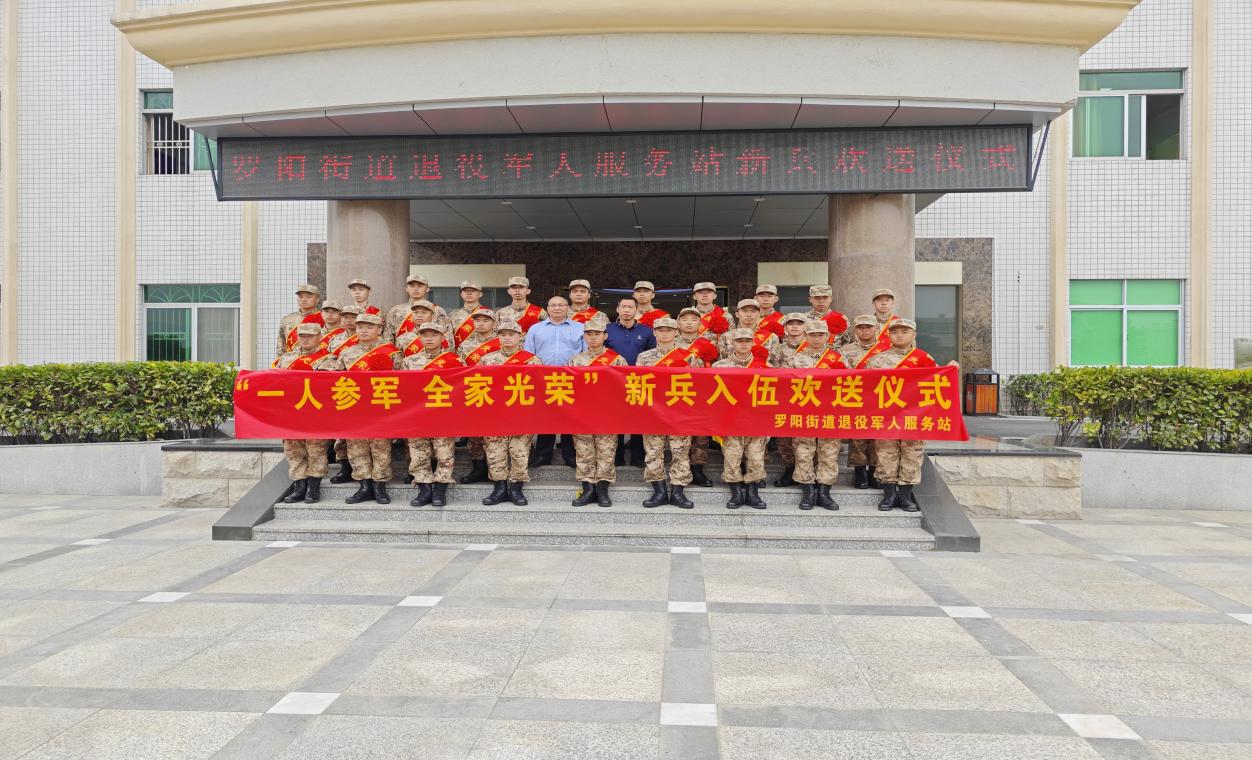 欢送现场,来自罗阳辖区的27名新兵身着迷彩服,佩戴大红花和绶带,个个脸上洋溢着自信阳光的笑容,军姿挺拔,精神抖擞。他们将于明天奔赴火热的军营,开启崭新的军旅生涯。