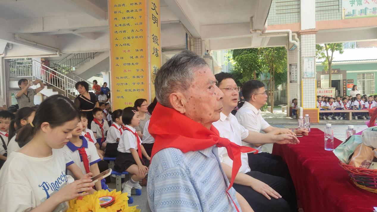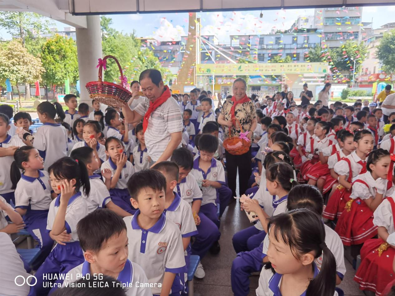 街道关工委的老同志们与师生一起观看庆“六一”文艺表演,派发了糖果等小礼品,并与小学生们亲切交流,询问了他们的学习和生活情况,鼓励他们树立正确的人生观和价值观,为实现中国梦做出自己的贡献。