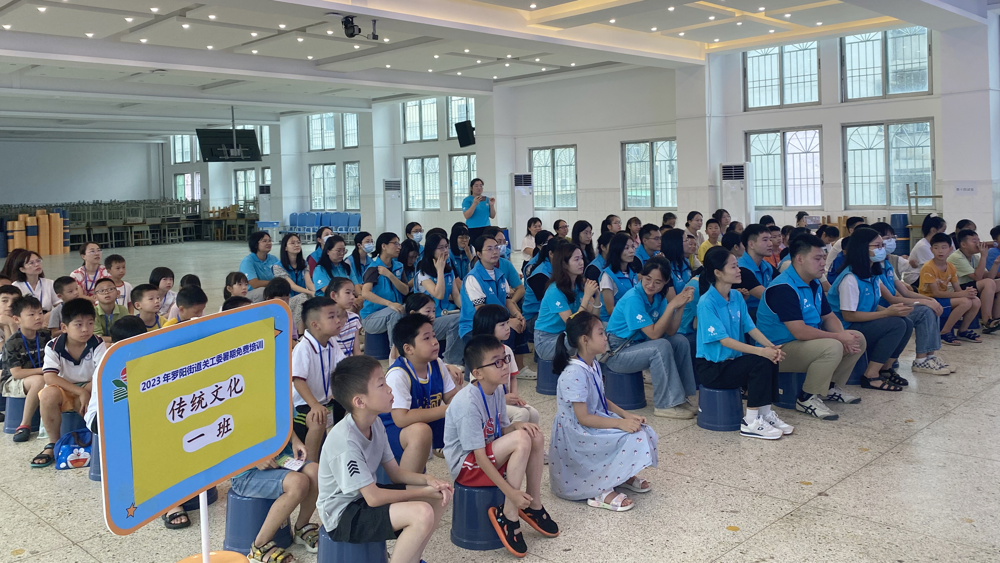 孔雁玲指出,开展传统文化暑假培训班有利于陶冶小朋友的情操,增长他们的知识技能,同时也能减轻家长的带娃压力,是满足群众需求的好事、实事。她强调,一是小朋友们要珍惜机会,遵守纪律。传统文化是我们民族文化的瑰宝,培训班的老师为此也认真准备了一段时间,希望小朋友们能认真学习,学有所成。二是老师们要有“三心”,履职尽责。要有爱心,此次培训是免费的,希望老师们讲奉献,有作为;要有耐心,小朋友们年龄阶段各不相同,希望老师们更有耐心对待他们;要有细心,细心观察每一位小朋友,及时与家长反馈,大家相互配合,共同做好本次培训。三是学校和志愿者、社工要重视小朋友们的安全,让他们高高兴兴地来上课,平平安安地回家里。