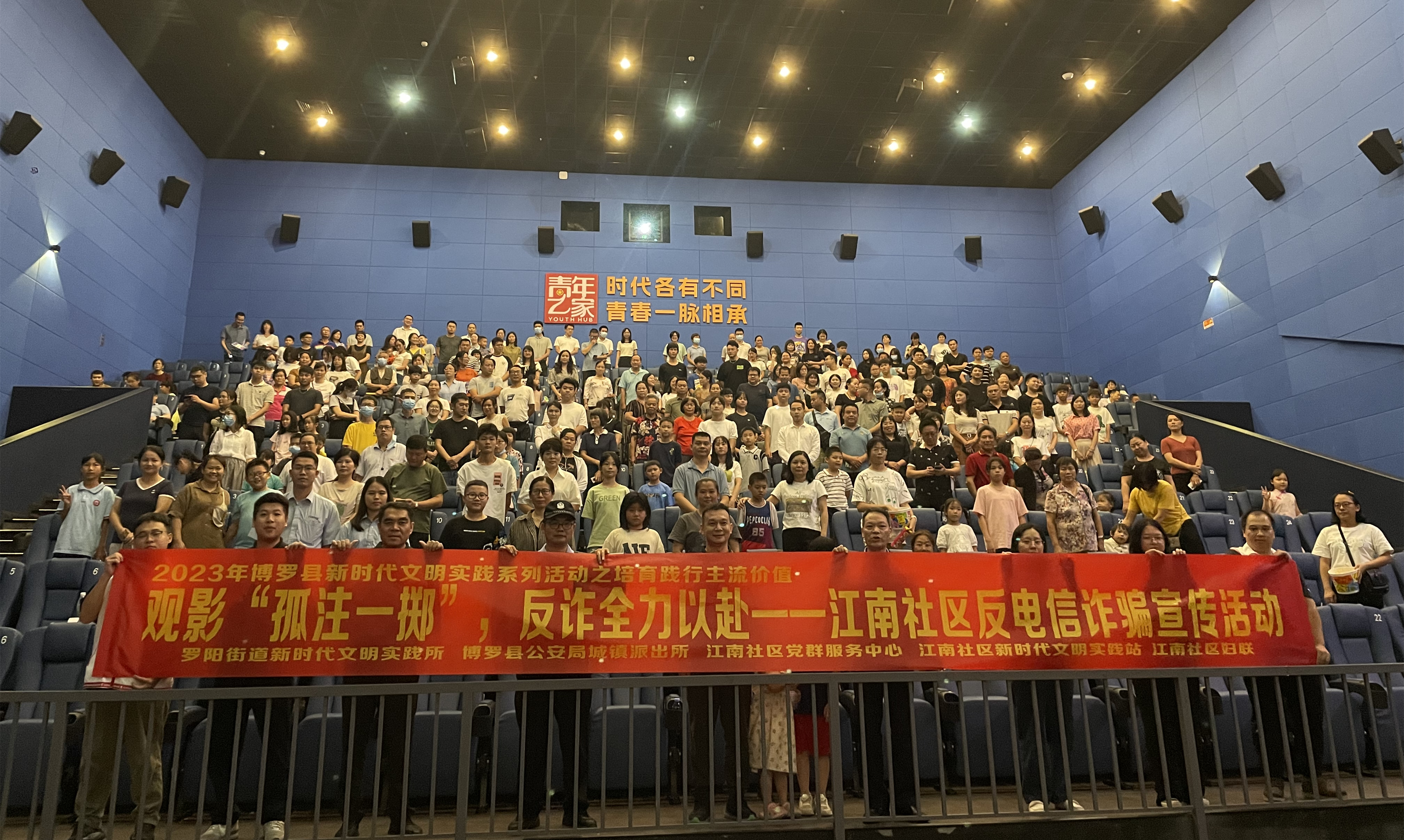 随着电信网络的快速发展,各式各样的诈骗形式层出不穷,为进一步提升广大群众知诈、识诈、防诈、反诈意识,最大限度预防和减少财产损失,切实守好群众“钱袋子”,持续筑牢全民反诈防线,8月30日,罗阳街道新时代文明实践所联合中文博彩平台公安局城镇派出所、江南社区邀请了江南片区党员干部、退役军人、群众居民等三百余人集中观看近期热门的反诈题材电影《孤注一掷》,吸引群众广泛参与学习反诈知识,掀起反诈热潮。