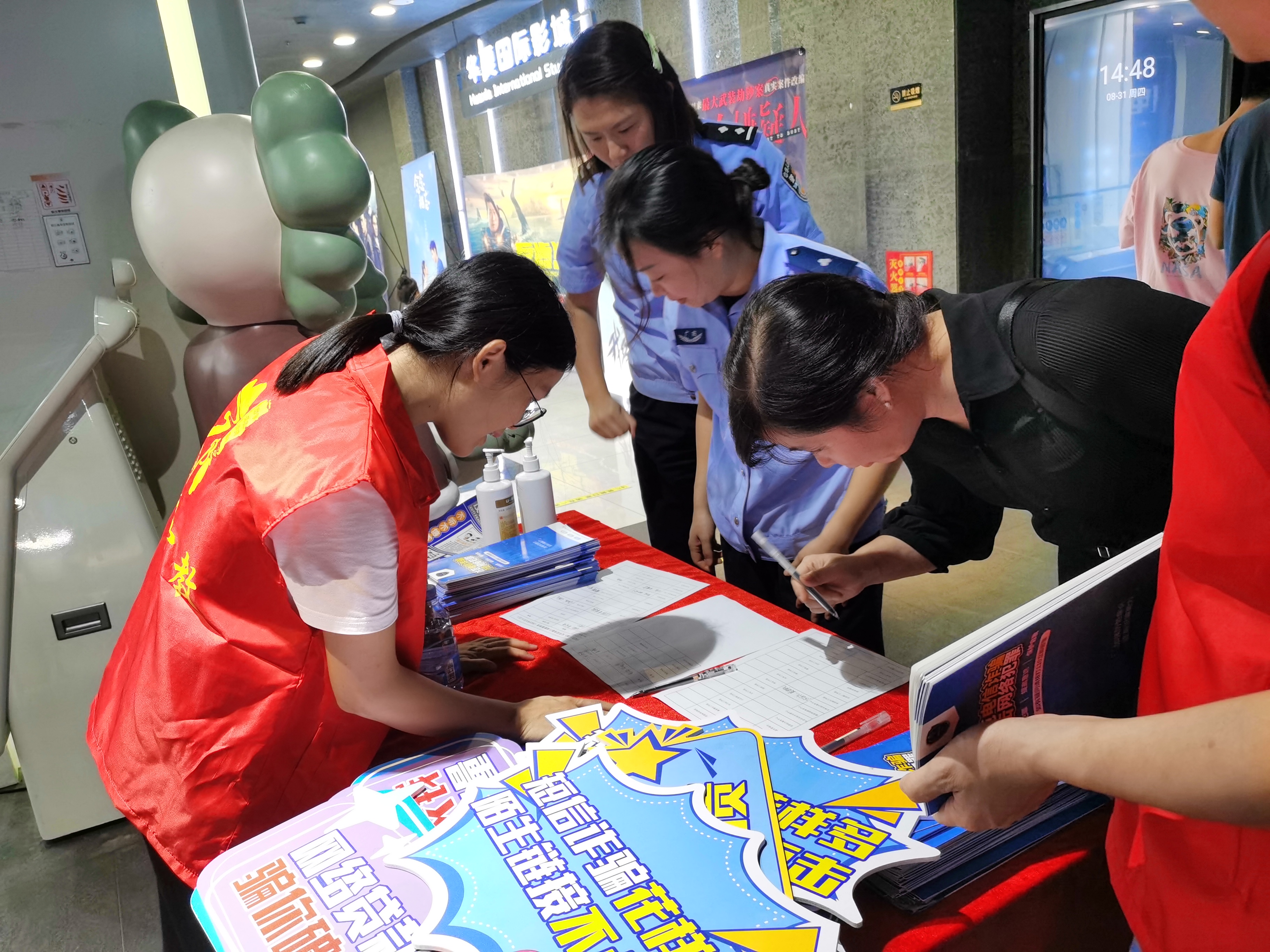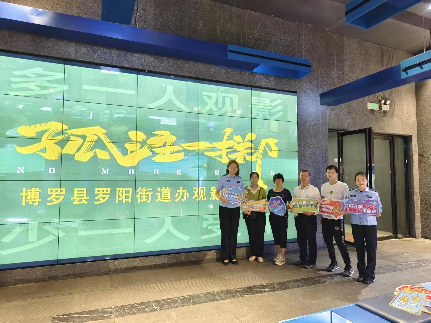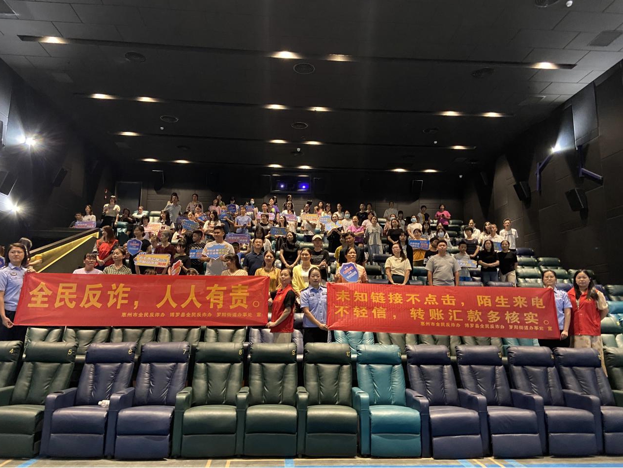 观影前后,街道工作人员进行了多样化的反诈知识宣传普及,其中包括派发宣传海报及手册,民警及工作人员进行现场反诈知识传授、讲解,影厅内组织拉横幅、喊口号等方式,全面性的加强全体干部职工反诈意识。