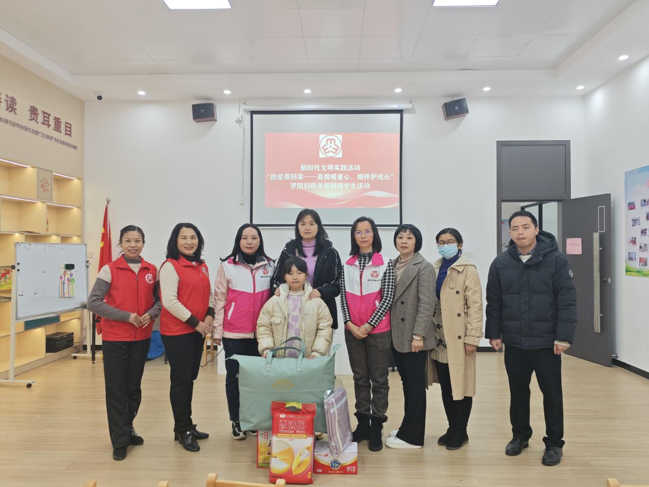 为深入贯彻习近平总书记关于妇女儿童和妇联工作的重要论述精神,聚集妇女儿童“急难愁盼”问题,让困难家庭度过一个欢乐祥和的新春佳节,近日,在罗阳街道副主任、妇联主席王彬兰带领下,罗阳街道妇联、中文博彩平台教育义工团志愿服务队在罗阳街道龙珠社区联合开展“把爱带回家——真情暖童心,相伴护成长”困境学生关爱慰问活动。
