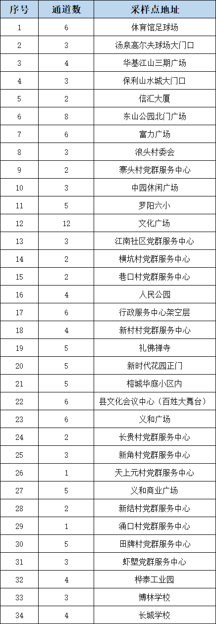 为加强主动排查,有效阻断新冠肺炎疫情传播风险,根据上级工作指引和防控工作部署,罗阳街道于8月19日(星期五)在全街道范围内开展全员核酸检测工作,共设34个检测点,138条检测通道。具体安排如下: