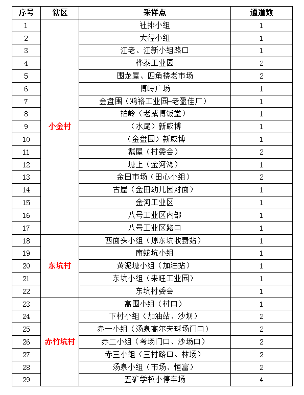罗阳街道小金村、东坑村、赤竹坑村居民(含外来人员)