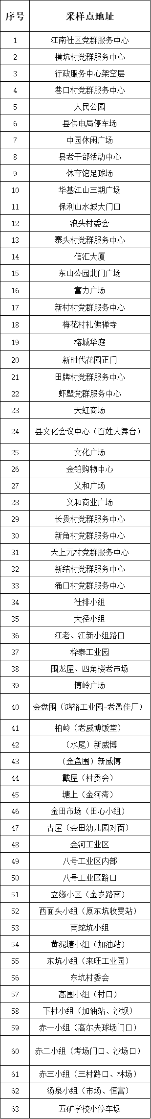 备注:长贵村党群服务中心、新角村党群服务中心、天上元党群服务中心、新结村党群服务中心、涌口村党群服务中心核酸采样时间为:10月8日下午18:00—22:00