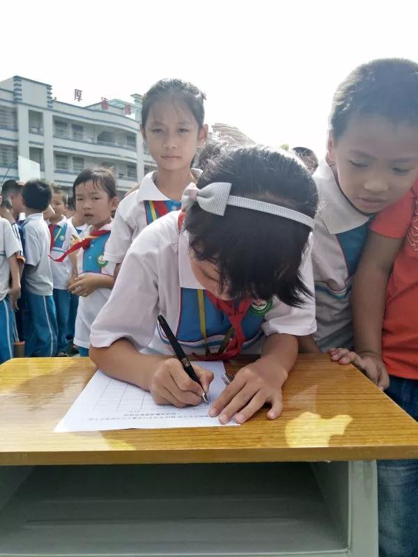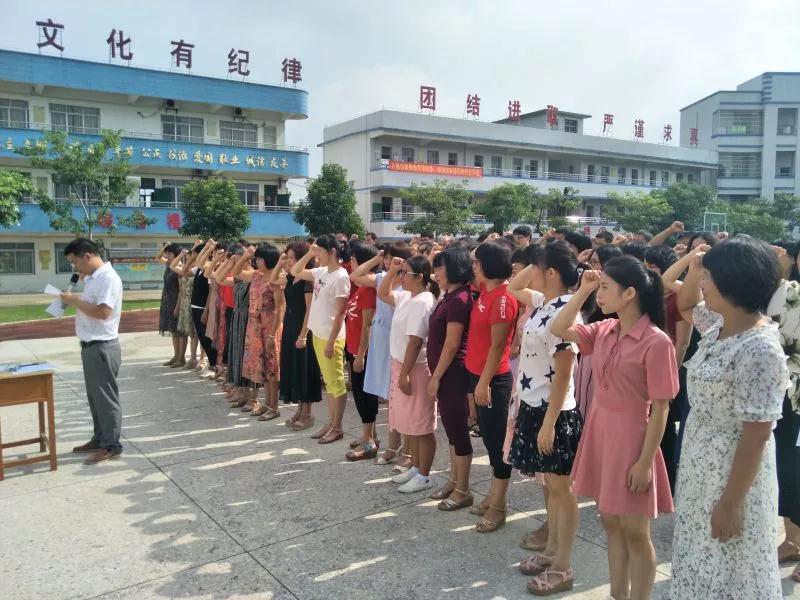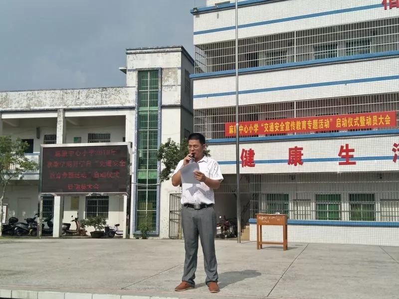 参加本次大会的有镇委委员蔡耀文,文教助理李敏同志及麻陂派出所张玉辉副所长。本次大会共4个议程。首先由李镇环副校长通报广东省近期较大的交通事故。一宗宗重大的交通事故令人痛心不已,同时也让在场的人警醒:事故猛于虎 ,安全大于天。紧接着全体教职工在国旗下举起右手庄严地宣誓承诺。然后,全体学生宣誓承诺签名。铿锵有力的誓言回荡在校园,也扎根在每个人的心中。最后各班回教室认真观看惠州马路天使公益人马相华老师宣讲的《马路天使交通安全教育片》。