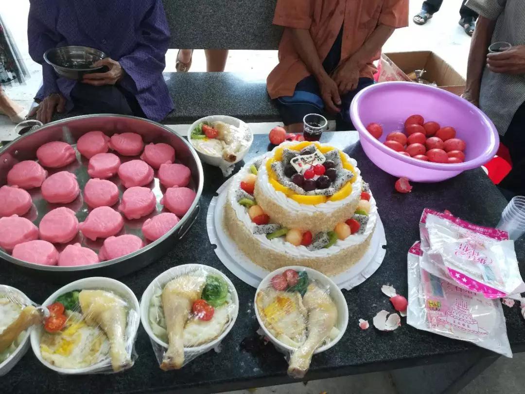 为老人精心准备的长寿面及长寿粄、红鸡蛋