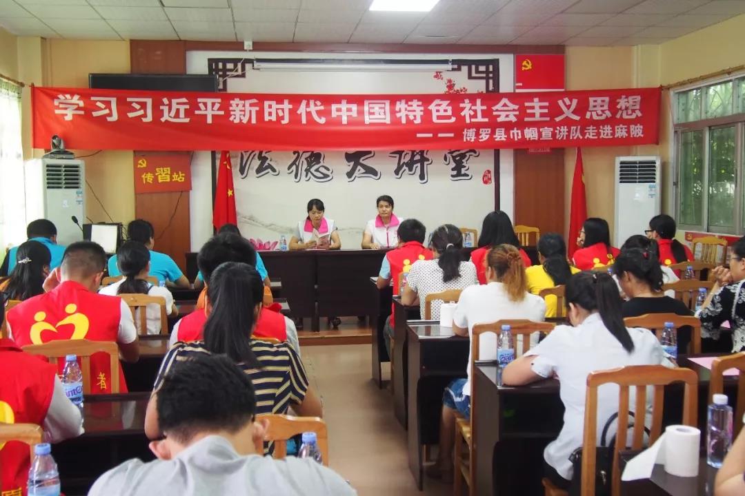 2018年8月15日上午8点,麻陂镇妇联在塘尾村开展“学习习近平新时代中国特色社会主义思想”宣讲活动,参加的人员有各村的妇联主席、执委人员、大学生志愿者和社工40多人。