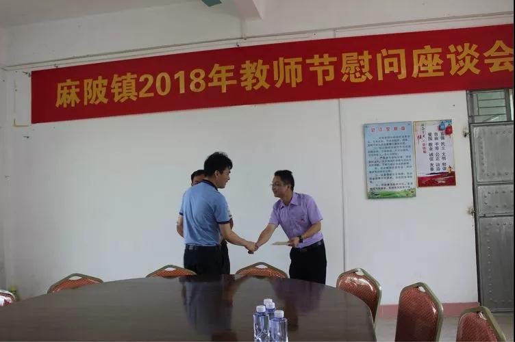 慰问座谈会上,潘副县长一行与麻陂中学、麻陂中心小学行政领导和教师代表进行了亲切会谈。会上分别听取了麻陂中学校长叶利雄、麻陂中心小学校长李瑞丰两间学校的基本办学状况、师资力量建设和特色发展等,潘副县长对各校近年所取得的改变给予了肯定。同时,也对学校的整体规划和存在困难提出了长远的建议和指导。她还希望麻陂镇全体教师要不负众望,再接再厉,不断加强自身师德修养,努力成为价值和信仰的引领者、学习和修身的领路人、文明和责任的践行者。精心教学,关爱孩子,为社会培养更多有用之才。最后,潘副县长、陈局长还向各校教师赠送了节日慰问金。