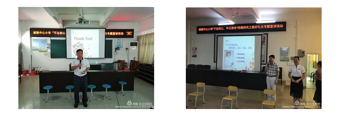 宣讲活动结束后,麻陂中心小学李瑞丰校长、陈国强副校长对讲师团的精彩宣讲表示衷心的感谢,并希望本次培训能够成为大家打开礼仪之门的一把钥匙,让文明礼仪成为校园亮丽的风景线。同时要求全体教师外塑形象,内强素质,以满怀激情地投身教育事业,不断提高自身的素质,以良好的师德,共同撑起教育的蓝天。