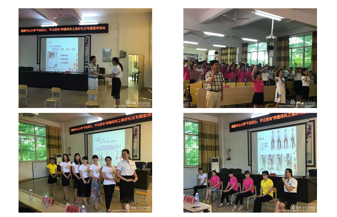 宣讲团的老师们亲切示范,与现场教师密切互动,告诉老师们怎么从衣着、装饰、站姿、坐姿、眼神、微笑、手势诸方面把自己打造成一个符合教师身份的温文尔雅、文明礼仪的新时代受欢迎的教师,讲堂里掌声不断,并不时传出阵阵欢快的笑声。