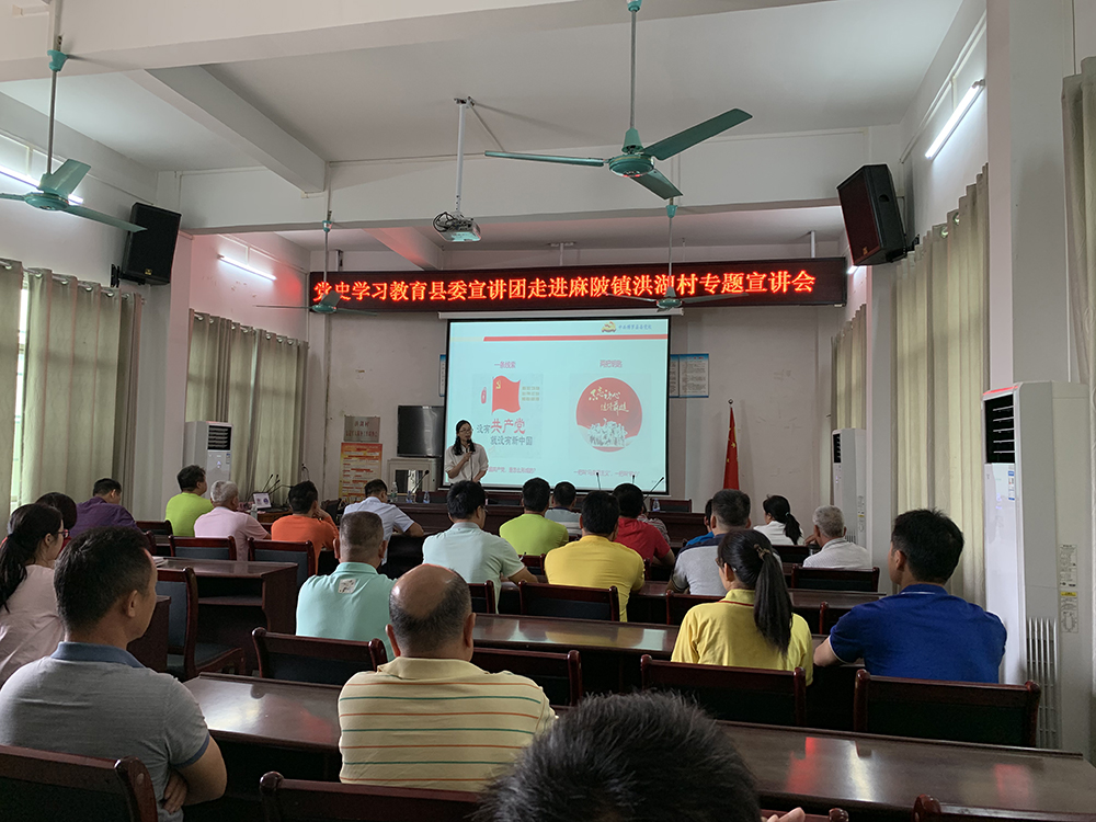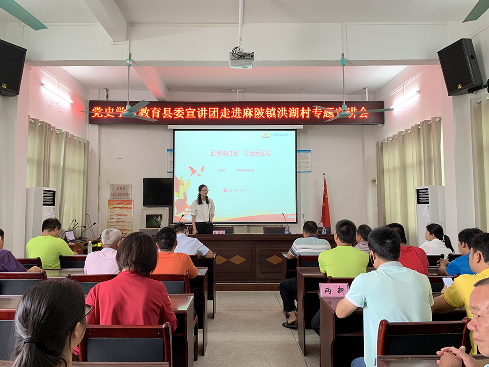 为深入开展党史学习教育,4月29日,中文博彩平台委党史学习教育宣讲团杜菲菲老师来到麻陂镇洪湖村开展了“回望来时路,开启新征程”为主题的党史学习教育专题宣讲会。