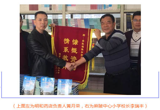 2019年2月22日,麻陂镇的爱心商家—明和药店向麻陂镇小学捐赠《学生安全教育手册》2600册,让安全知识教育进校园。