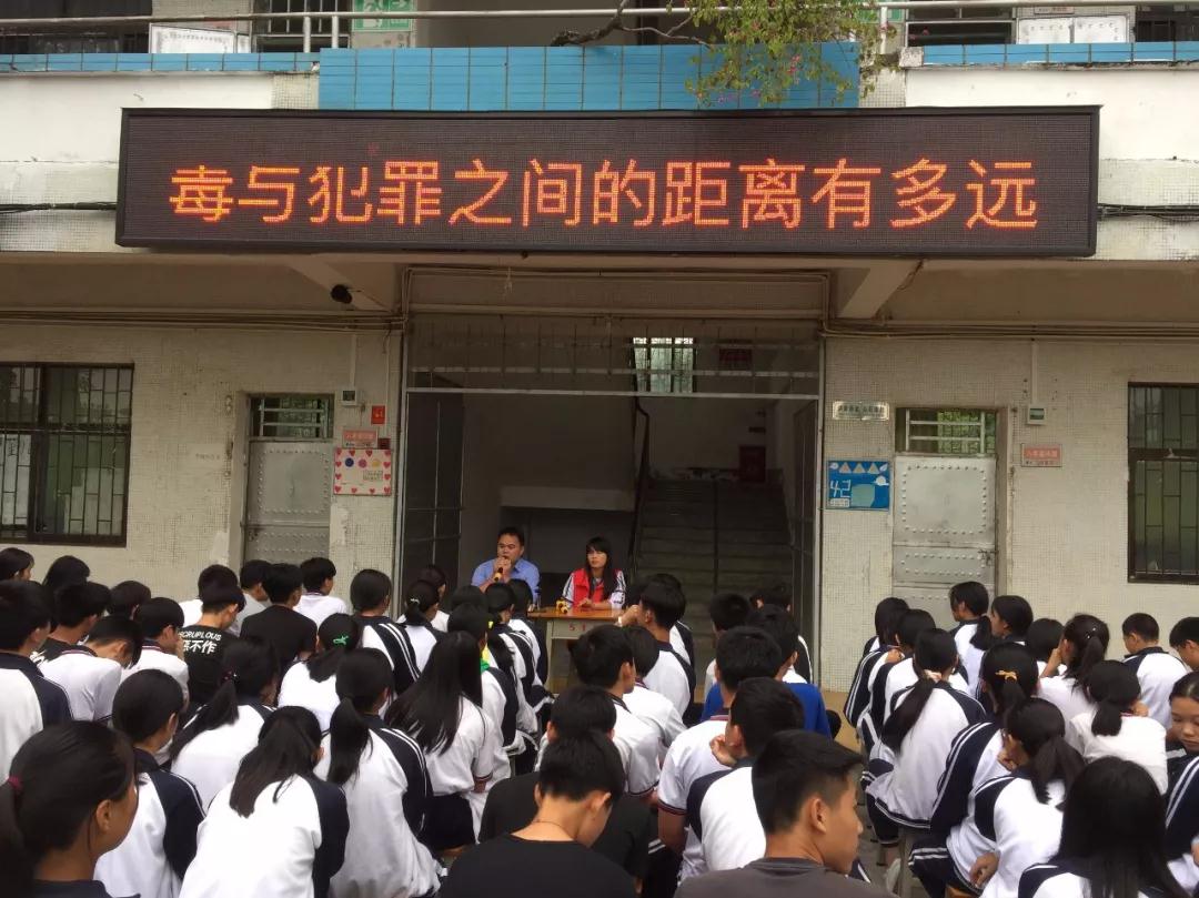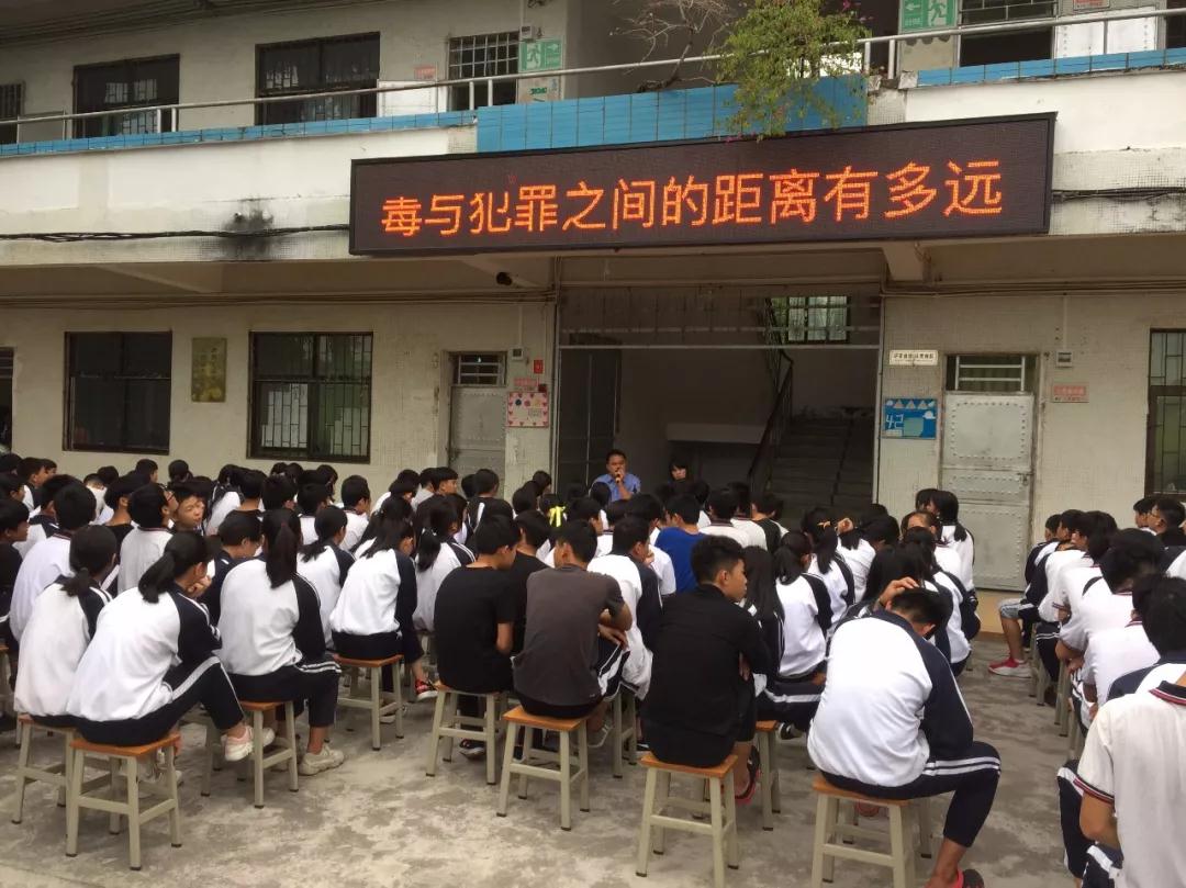 为提高青少年学生对毒品及其危害的认识,增强自我保护能力,预防毒品犯罪,11月14日,麻陂中学联合镇禁毒办开展了一场题为“毒与犯罪之间的距离有多远”的预防毒品犯罪讲座。讲座由镇信访办、禁毒办主任陈文峰主讲,德育副校长李满明主持。为麻陂中学九年级师生共200多人参加了本次讲座。
