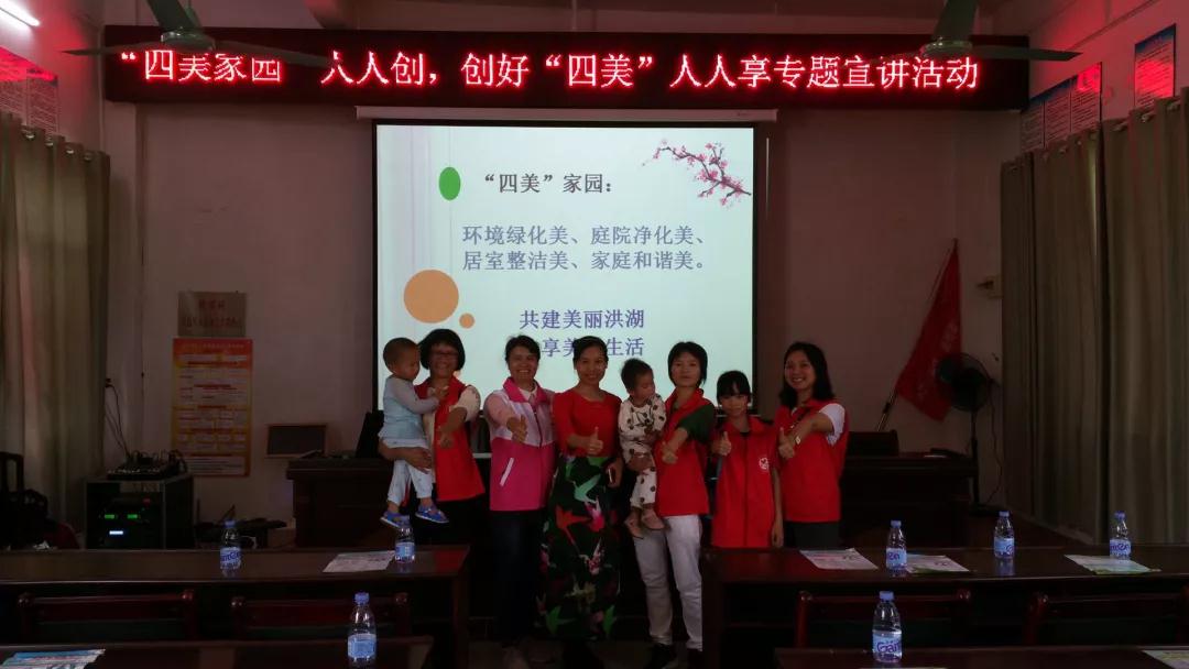 4月7日上午9:00,我镇妇联分别于塘尾村、洪湖村开展“共建四美家园”专题宣讲活动,活动邀请到博仁文化志愿者协会周翠芳老师、许素贞老师前来进行授课。塘尾村、洪湖村村两委干部、村民及各村的执委人员共160多人参加活动。