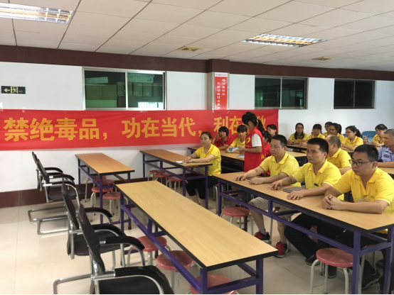 为进一步增强企业职工识毒、拒毒、防毒意识和能力,实现政企共筑毒品预防教育防线,推动全民禁毒顺利开展,2019年6月6日下午,麻陂镇禁毒办联合禁毒志愿者来到鸿信表链厂开展以“禁绝毒品,功在当代、利在千秋”为主题的禁毒宣传进企业活动。