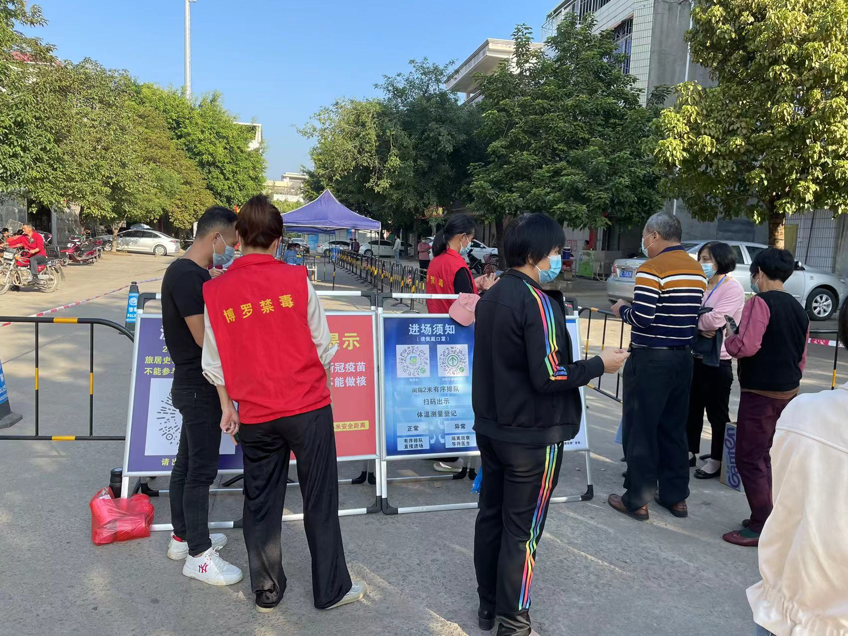 2021年11月21日上午,麻陂镇开展大规模核酸检测,麻陂镇禁毒办积极协助核酸检测工作,禁毒民警、社工、志愿者等积极投入战“疫”,纷纷到核酸检测点支援。