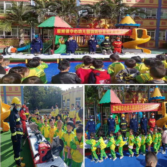 消防宣传进校园:麻陂镇专职消防队到中心幼儿园开展消防安全宣传教育活动。