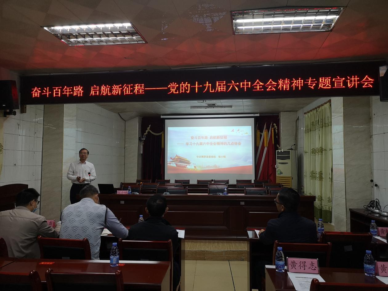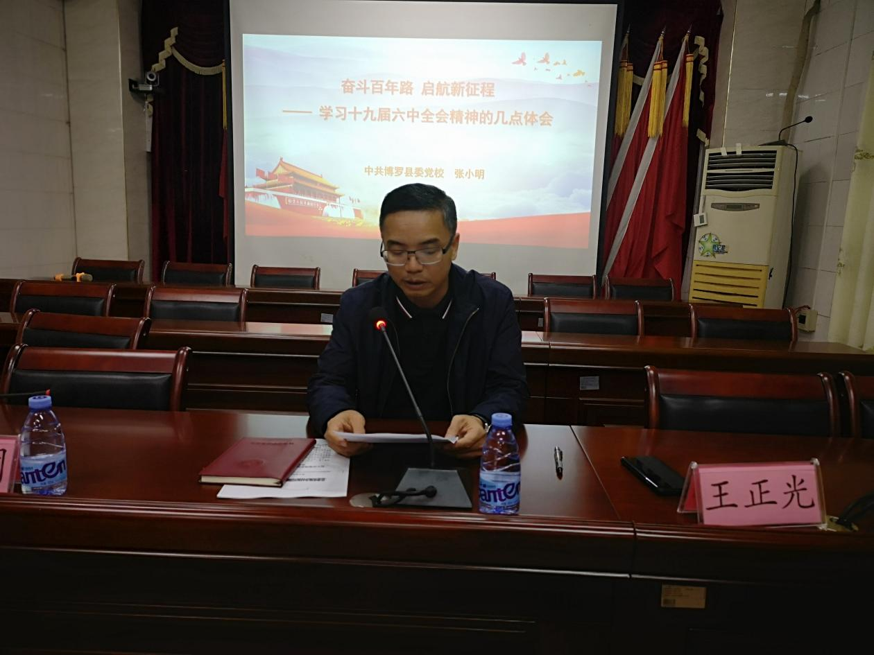 12月10日上午,麻陂镇邀请县委党校四级调研员、原校长、县委宣讲团成员张小明到麻陂镇作奋斗百年路 启航新征程——党的十九届六中全会精神专题宣讲。镇三套班子成员、各村(社区)书记、各村组织委员、部门负责人、党员干部约100人参加了此次宣讲会。会议由镇党委副书记王正光主持。