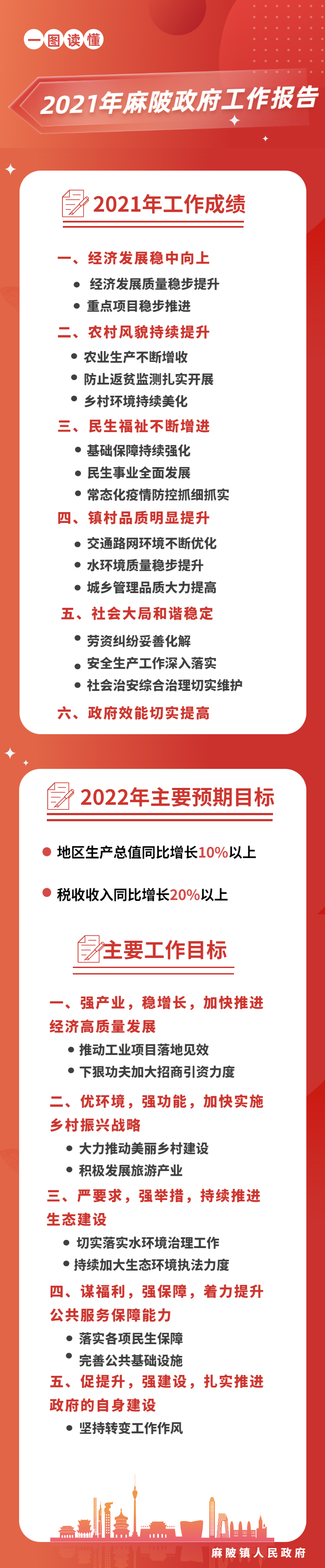 镇党委副书记、镇长张健所作的政府工作报告对2021年麻陂镇人民政府工作进行了认真回顾,对2022年工作进行了全面安排部署。报告指出,2021年镇政府在县委、县政府及镇党委的正确领导下,在镇人大的有力监督支持下,团结和带领全镇人民,做好稳增长、促改革、调结构、惠民生、防风险各项工作,推动经济平稳健康发展、社会大局平安稳定、人民生活水平稳步提升。