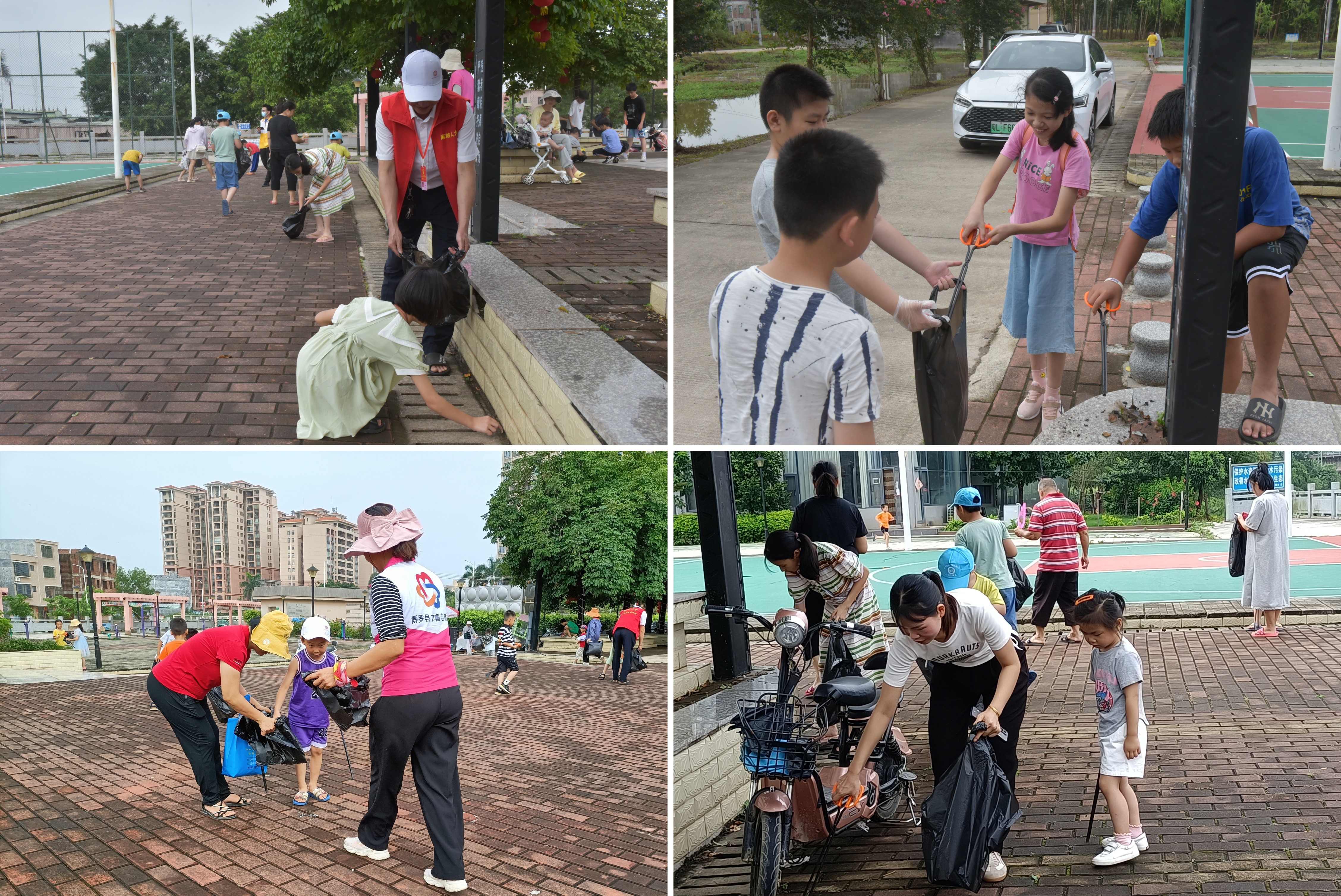 活动中,大、小朋友们手持垃圾袋、垃圾钳等工具,在广场周边开始捡跑,将路面、草坪、花坛的烟头、纸屑、塑料袋等垃圾一一捡起。家长们在此次公益活动中,用实际行动给孩子们树立爱护环境的榜样,起到了言传身教的作用;孩子们将亲身感受到自己的微小行动对环境产生的积极影响,他们心中的自豪感油然而生。