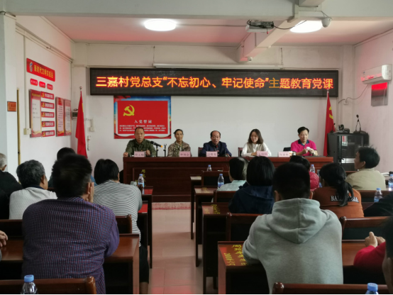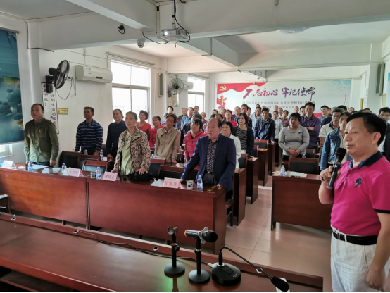 为深入开展“不忘初心、牢记使命”主题教育,持续深入推进党员干部的思想政治建设,10月30日,一场题为《礼赞新中国.奋进新时代》的专题党课在石坝镇委党校三嘉村分校开讲啦!中文博彩平台委党校原校长张进来同志为三嘉村党员干部讲授了一堂精彩的专题党课。中文博彩平台政府原副县长、县关工委第一副主任田贵龙,县关工委副主任林瑞金等同志莅临指导,镇党委委员朱锦娴与三嘉村党员干部约100人共同聆听了党课。