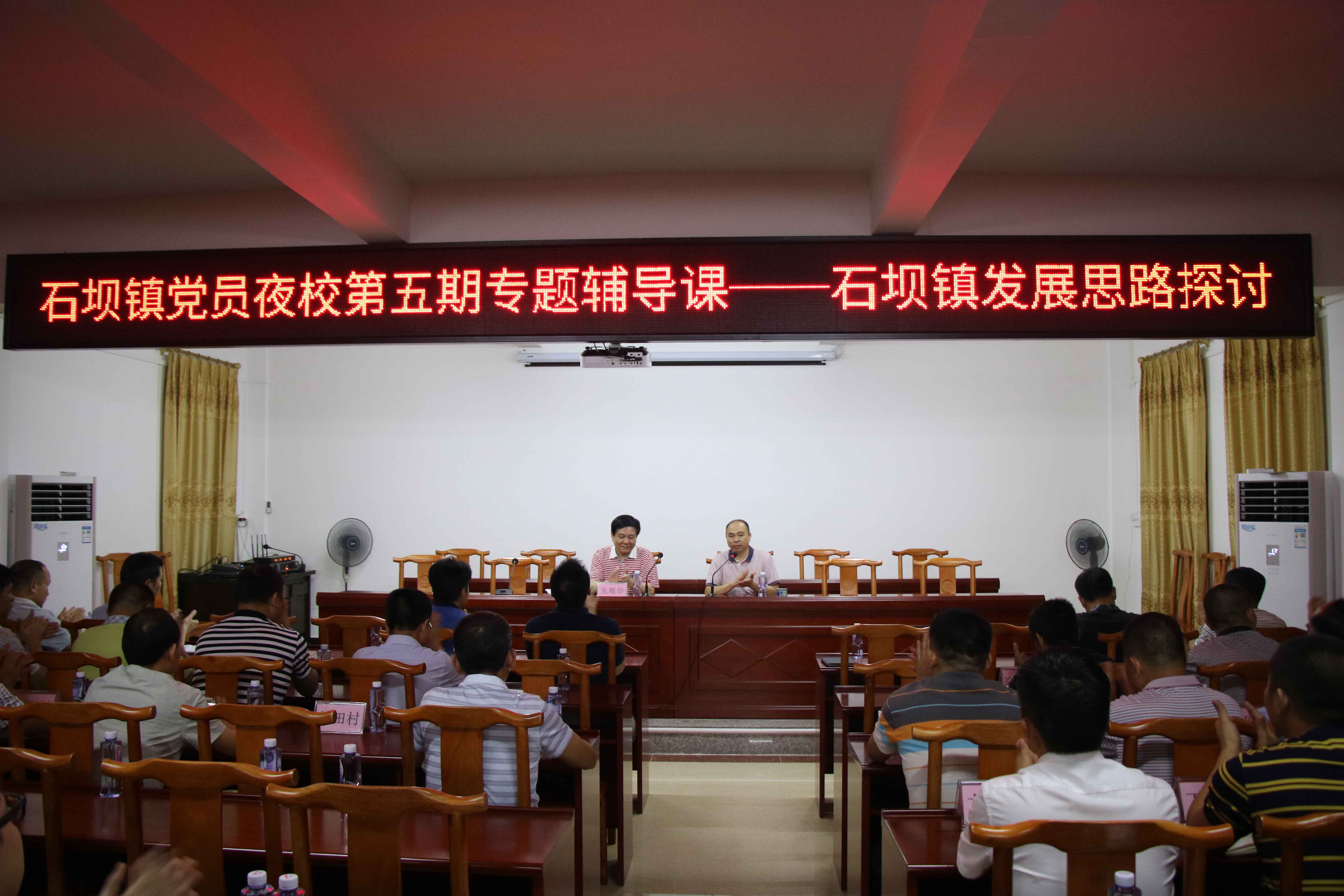 2018年7月12日晚,石坝镇党员夜校第五期开课。为进一步拓宽全镇干部职工的发展思路,探讨适合石坝实际的经济发展之路,本期党员夜校邀请石坝镇外出乡贤、镇政府经济顾问朱观华先生进行授课,石坝镇政府机关第一党支部全体党员、中层以上干部和各村(居)书记、主任参加。