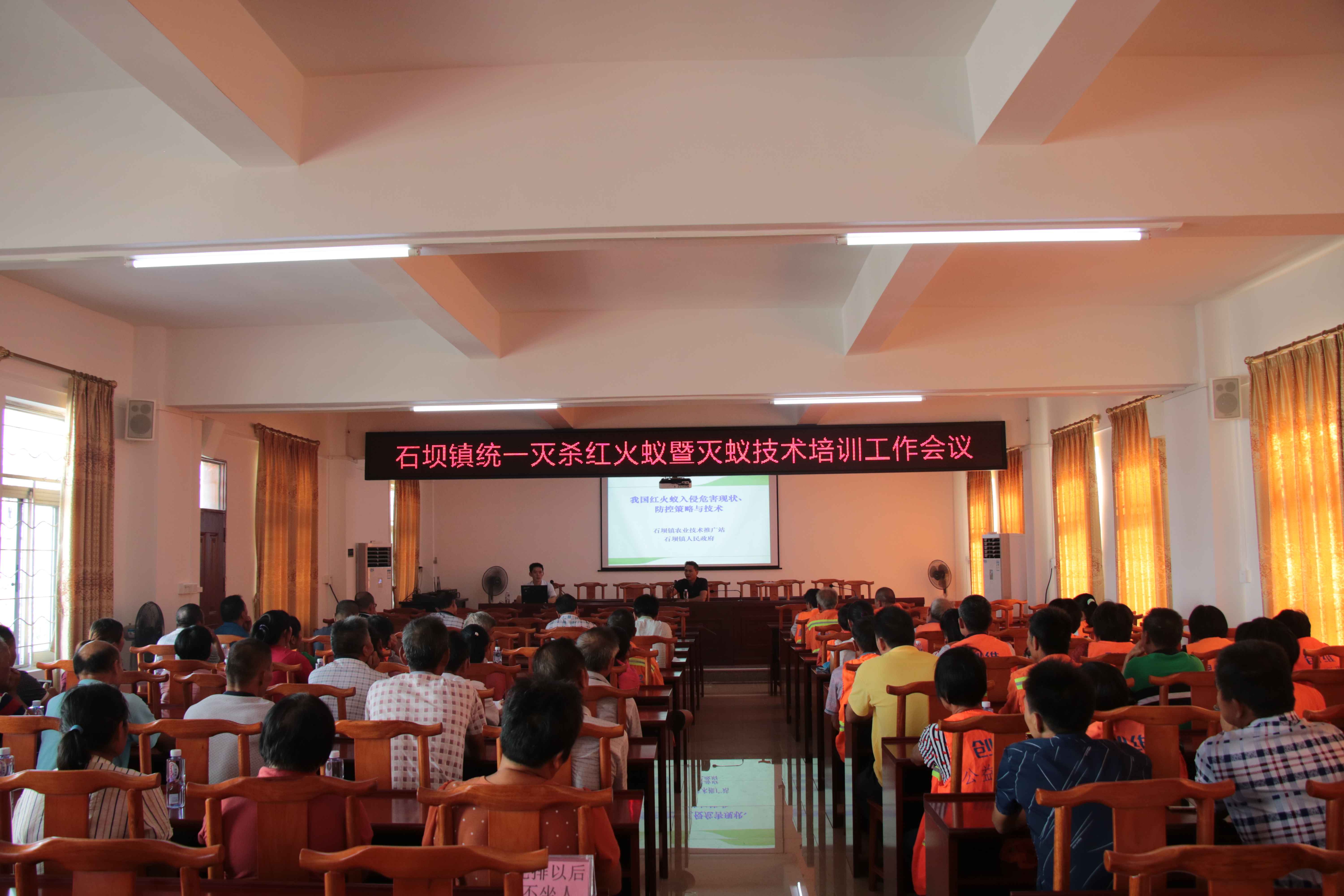 为确保红火蚁灭杀工作取得实效,9月29日,石坝镇召开了灭杀红火蚁暨灭蚁技术培训工作会议。会议由副镇长朱志明主持,镇农业技术推广站站长朱国庆作灭蚁技术指导,对各村(居)负责农业工作的村干部、保洁员及中小学负责安全工作的人员进行了系统培训,并发放了200箱灭红火蚁粉剂。培训重点强调了以下两点:一是要突出对广场、耕地、绿化道、草坪、道路、堤围、学校、住宅区等公共区域的红火蚁进行灭杀;二是要依托现有的人力资源,进行群防群控,切实提高红火蚁的防控效果。