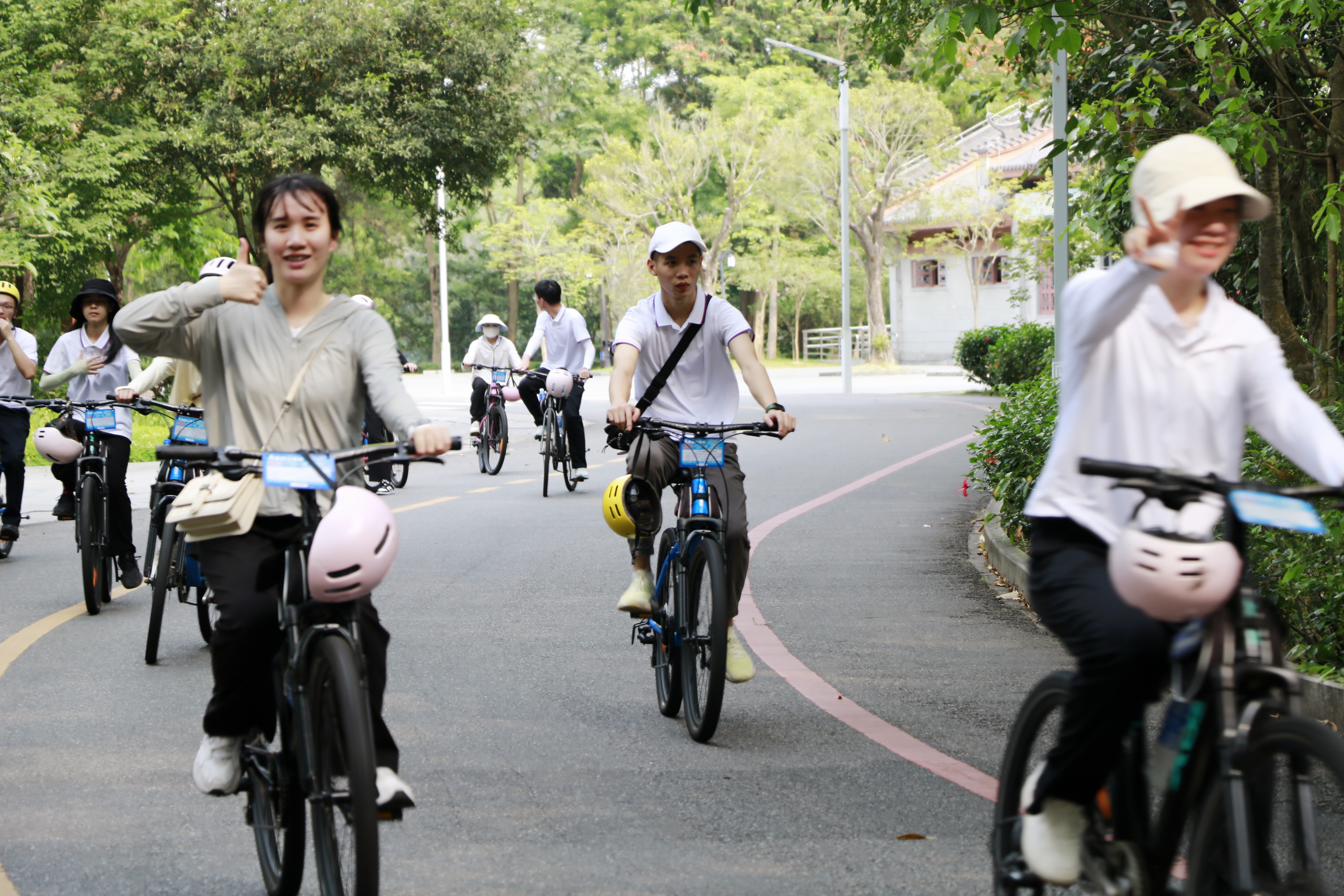 下午,和风渐渐,日影斑驳,正是骑行的绝好天气,石坝青年们前往惠州红花湖景区开展趣味骑行活动。在0km起点处,青年们激扬青春风采,神彩奕奕、斗志昂然,正式向18km出发,沿着骑行绿道一路奋力前行,一路领略红花绿影、湖光潋滟的大自然之美,彰显出青年青春正当时的气魄,砥砺奋进勇担使命的精神面貌。在廖承志同志生平陈列室广场处,青年们以一场“力拔山兮气盖世”的拔河比赛,凝聚青春向心力,赛前出谋划策、赛时加油打气、赛后击掌狂欢,充分发挥团队协作精神,僵持、坚持、速胜等精彩场面不断上演,掌声、笑声、呐喊声响成一片。