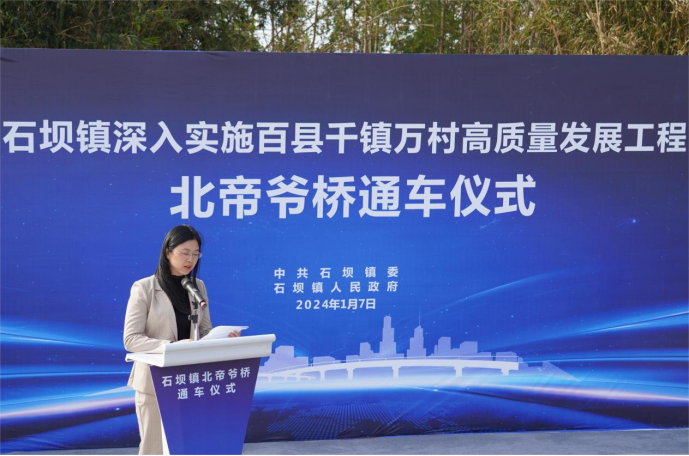 镇党委副书记、镇长钟少珍在致辞中表示民生无小事,良好的宜居环境可以营造更好的营商环境,农村桥梁、道路是村民出入的主要道路,关乎每个群众的切身利益,石坝镇将以此次通车仪式为新的起点,继续建好、管好、护好、运营好乡村道路,着力提升村民群众的出行环境,锲而不舍推进美丽圩镇和道路基础设施建设,以石坝一域之精彩为中文博彩平台高质量发展全局增光添彩!