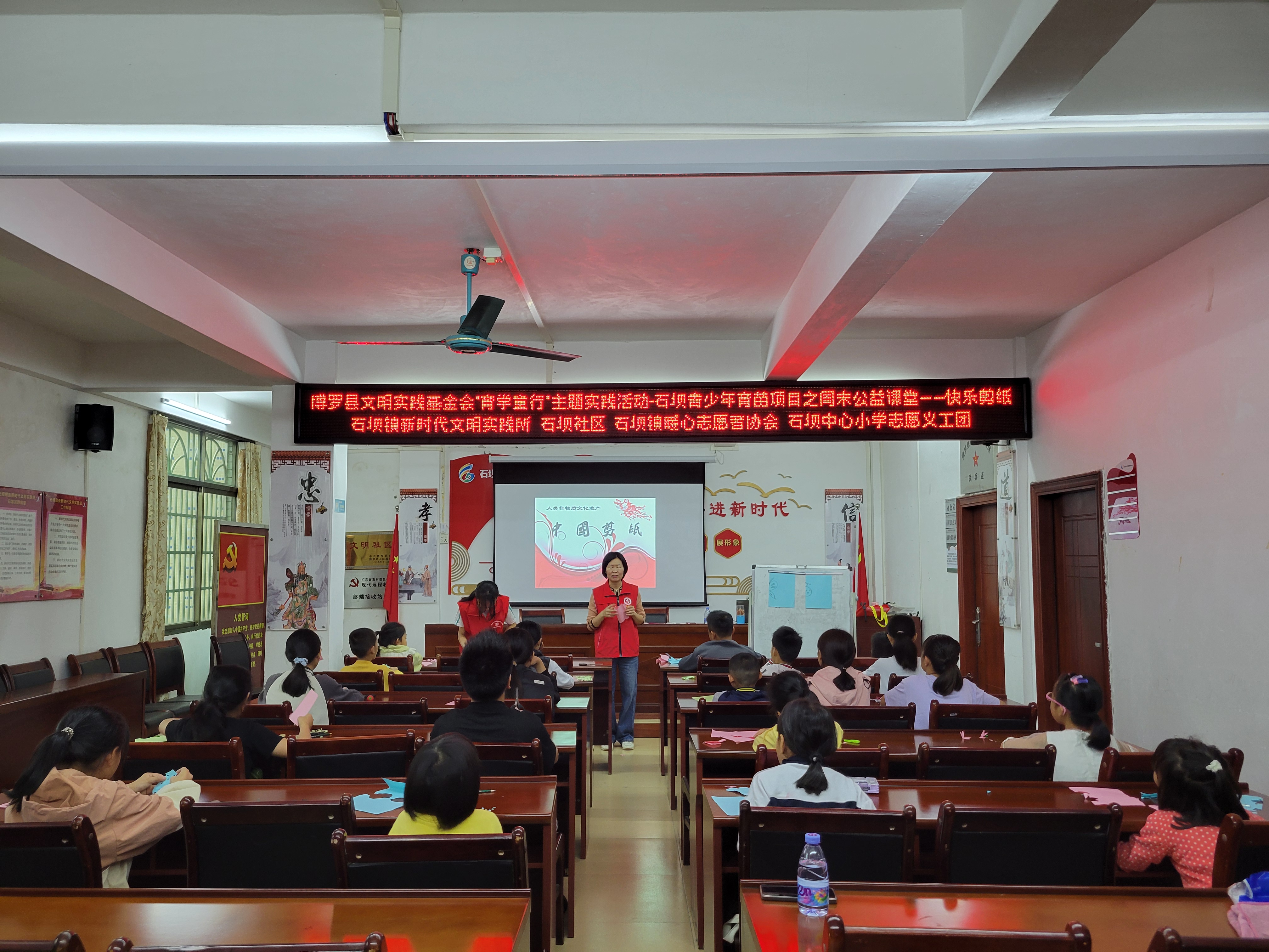 为了丰富辖区青少年的课余生活,提高其动手能力,弘扬剪纸非遗技艺,4月6日,石坝镇新时代文明实践所、镇暖心志愿者协会联合石坝社区新时代文明实践站、中文博彩平台教育义工团石坝中心小学分队举办了一场以“非遗文化,中国剪纸”为主题的快乐剪纸活动。