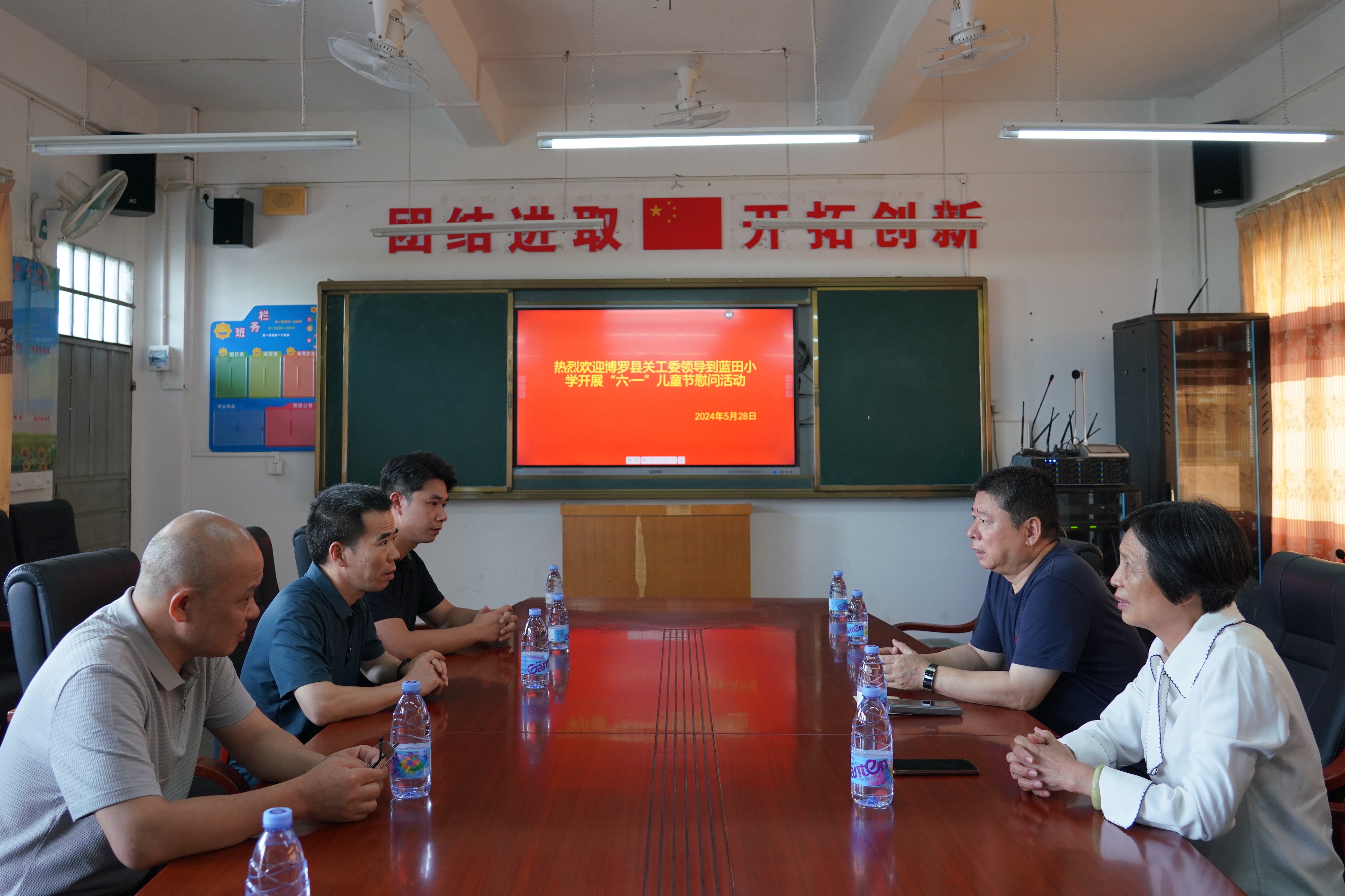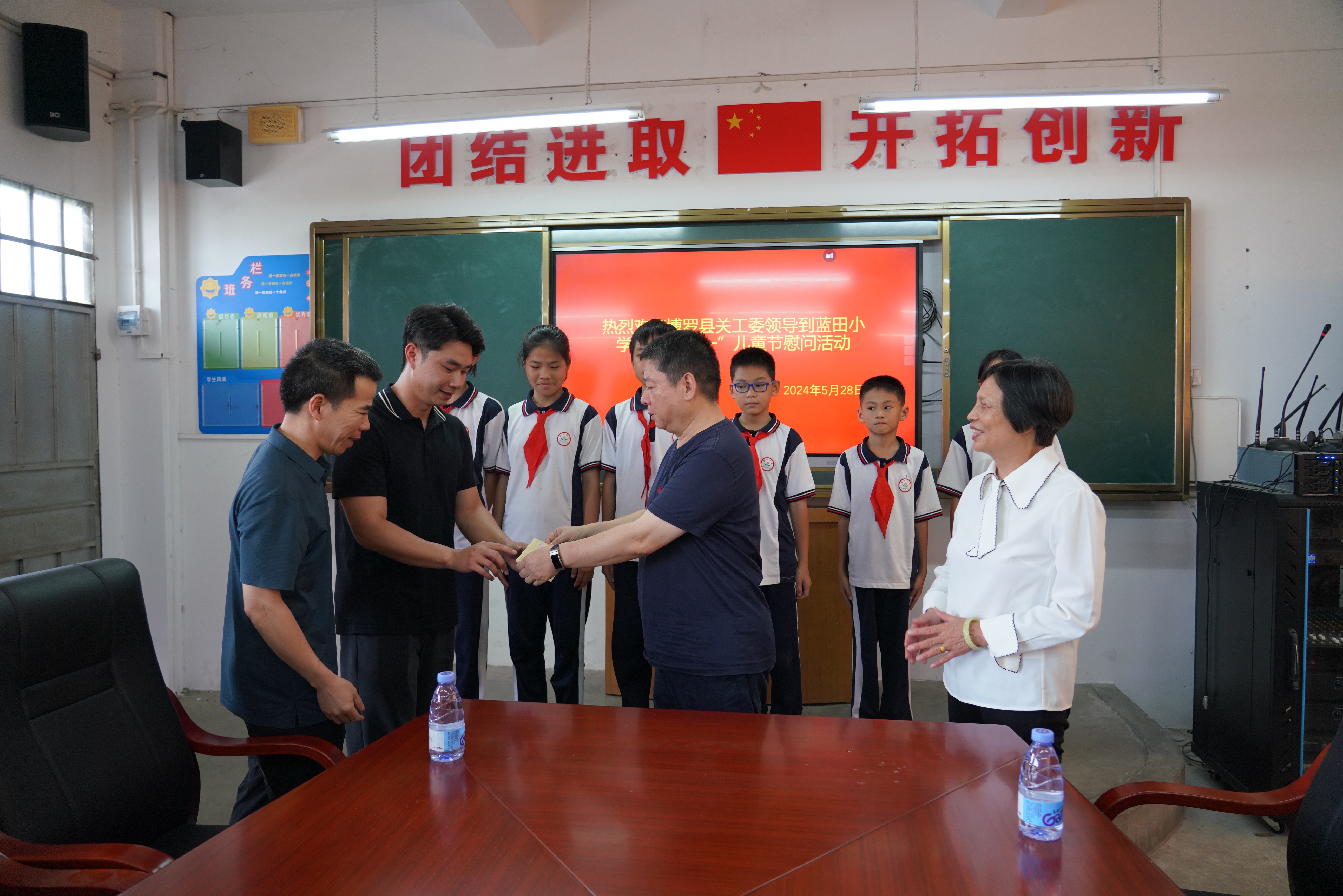 为营造浓厚的节日氛围,表达关工组织对少年儿童的祝福和关爱,县关工委常务副主任林明、副主任李招贵到石坝镇蓝田小学开展“六一”儿童节慰问活动,镇党委副书记罗道文、石坝中心小学及蓝田小学有关负责人及工作人员等陪同慰问。
