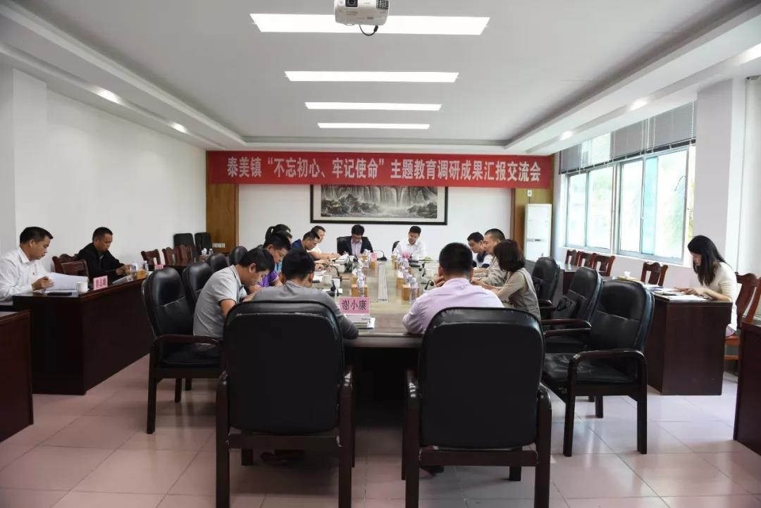 近日,泰美镇召开“不忘初心、牢记使命”主题教育调研成果汇报交流会,县委主题教育第七指导组组长李振源、指导员高冬平、张庆建到会指导。会议由镇党委书记黄海聪主持,镇领导班子成员就前期调研成果进行交流分享、提炼总结和经验推广,大力促进主题教育调研成果实现高质量转化,推动我镇各项工作迈上新台阶。李振源组长对我镇领导同志扑下身子,下沉一线,听取民意开展深调研给予了充分肯定,同时对下阶段主题教育工作提出明确要求,希望我镇加紧对调研问题进行整改,对照各项要求查漏补缺,列好任务清单,有计划有步骤地解决相关问题,推进工作落实,进一步巩固好、运用好调研成果,以实际行动践行“不忘初心、牢记使命”总要求。