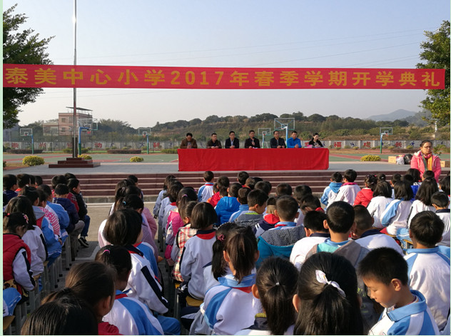 2月15日上午,泰美中心小学2017年春季学期开学典礼在庄严的升旗仪式中拉开了帷幕,学校全体师生出席了典礼,共同见证了这一仪式,开启了新的学期。