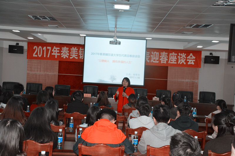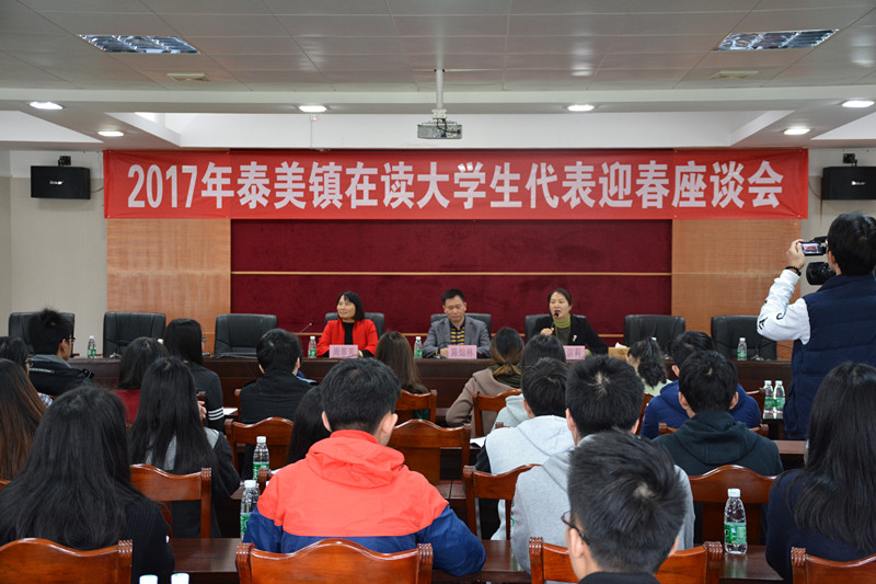 1月19日上午,“2017年泰美镇在读大学生代表迎春座谈会”在泰美镇政府三楼会议室召开,泰美镇镇长陈灿林、镇人大主席赵谊莉、县委组织部基层办副主任周翠芳、泰美镇各驻村第一书记以及来自泰美镇秀岭、新星等8个村的近70名在读大学生代表参加了此次座谈会。